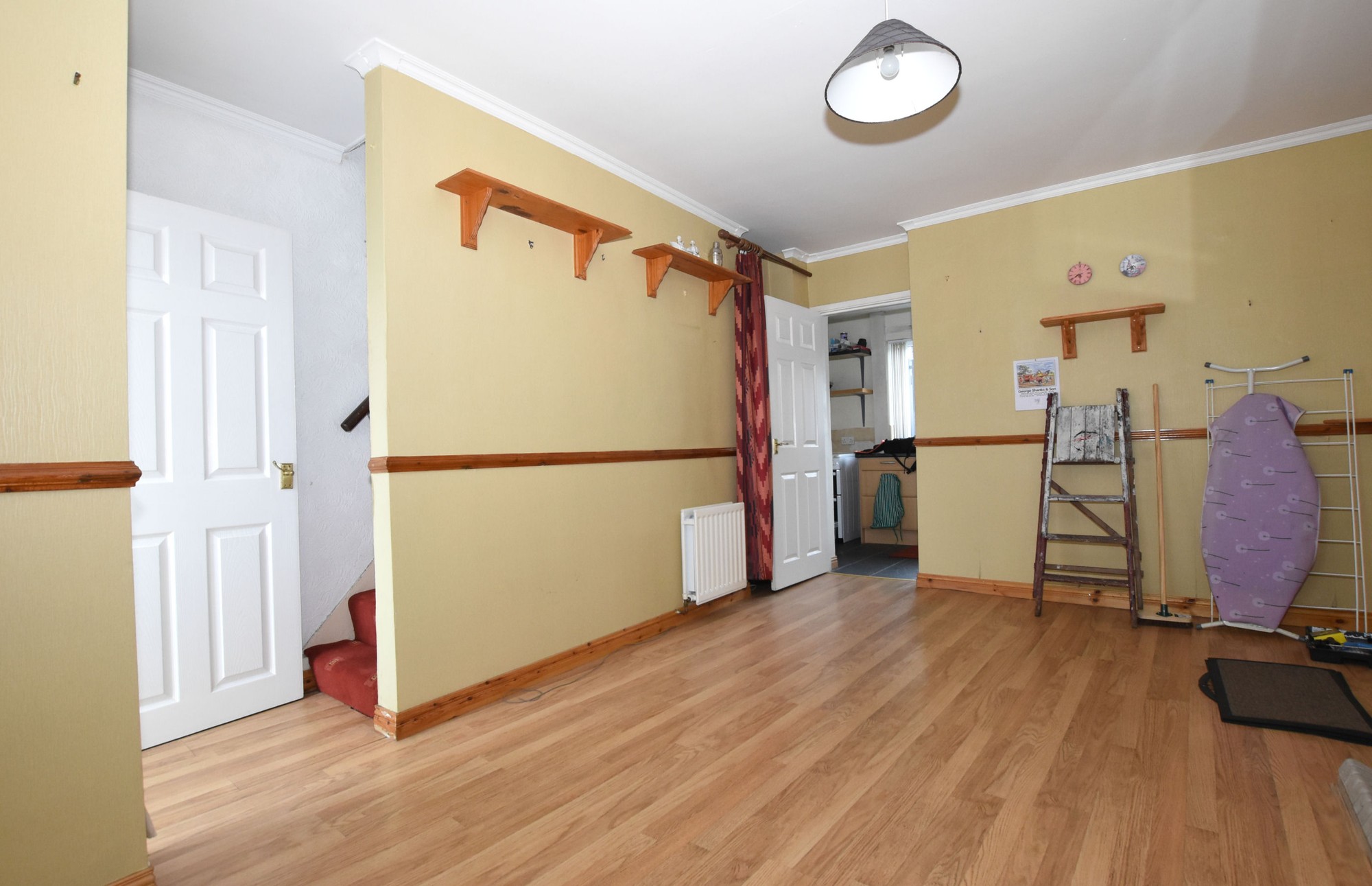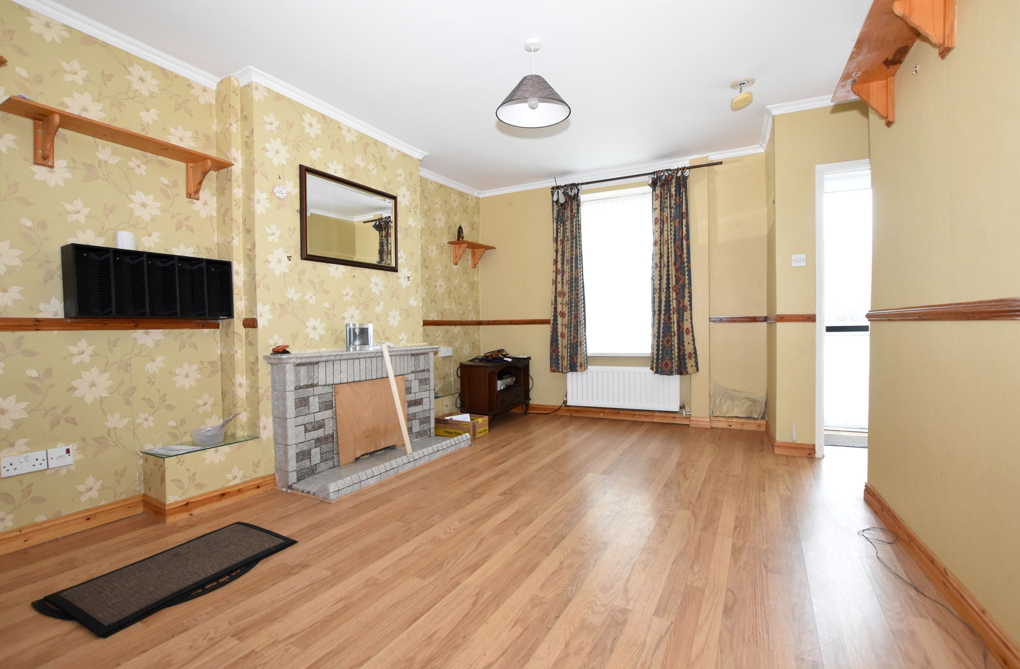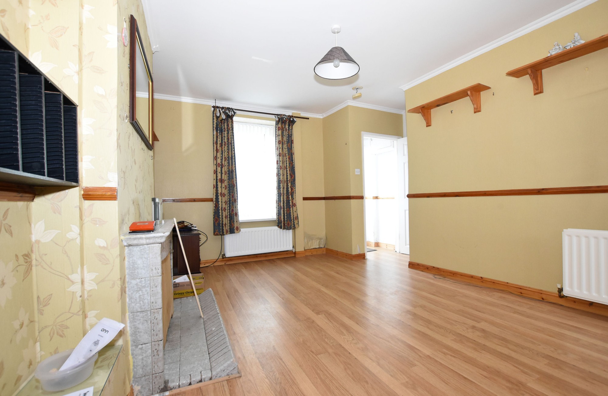 Overall. Tiled fireplace and hearth, feature flooring, dado rail and cornice ceiling. Two double panel radiators.