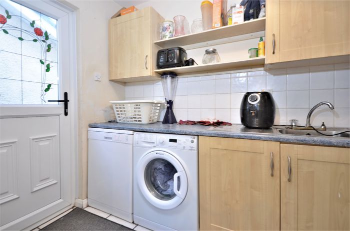 Plumbed for washing machine and dishwasher, high and low level cupboards