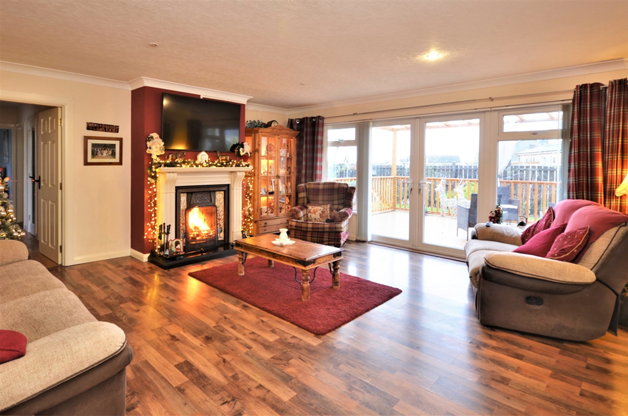 This is a family detached bungalow located on the Ards Peninsula in the rural hamlet of Ballycranbeg in the shadows of the picturesque St Josephs Church. The local village of Kircubbin is just 3 miles away and Portaferry is 6 miles to the south. Internally the main feature of the property is the fabulous living room which is open to the kitchen and also has double French doors out to the covered decked area at the rear. There is also a separate sitting room, four bedrooms, bathroom and utility room. There are gardens to the front and rear with ample parking and a detached studio