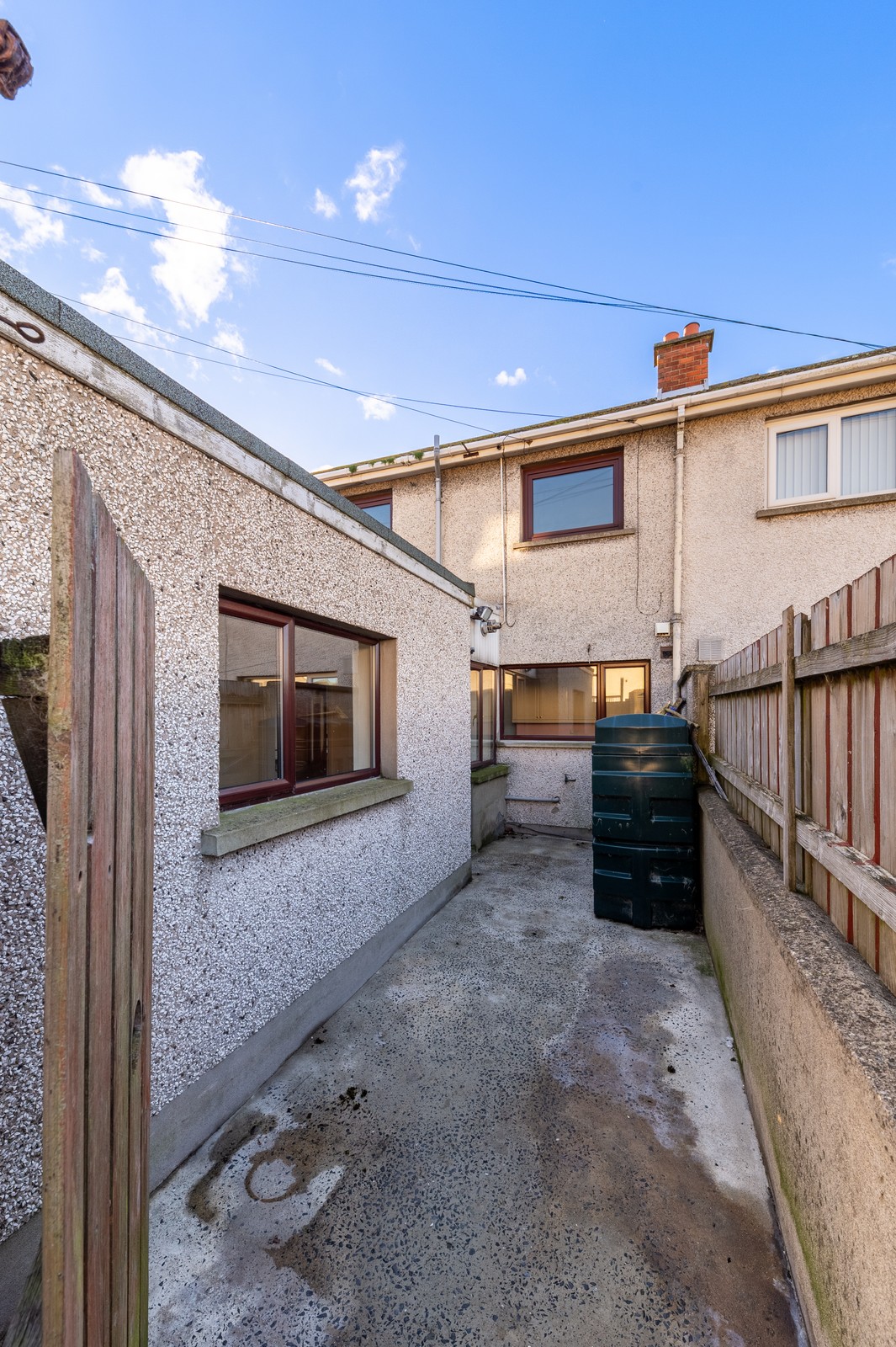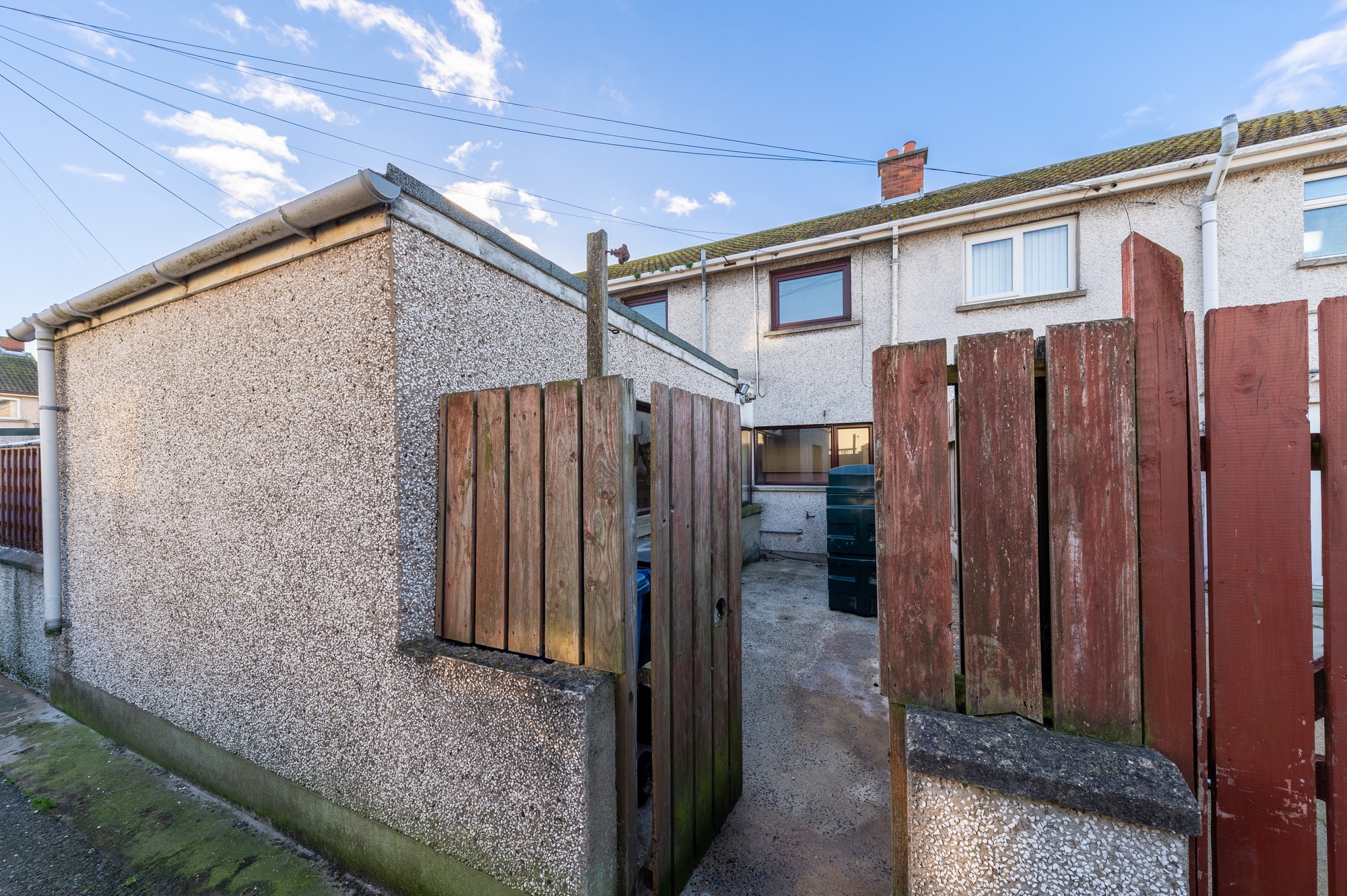 Externally, the property features a gated, fully paved, low-maintenance front area, while the rear offers a concrete yard with oil tank storage and a secure gated entrance.