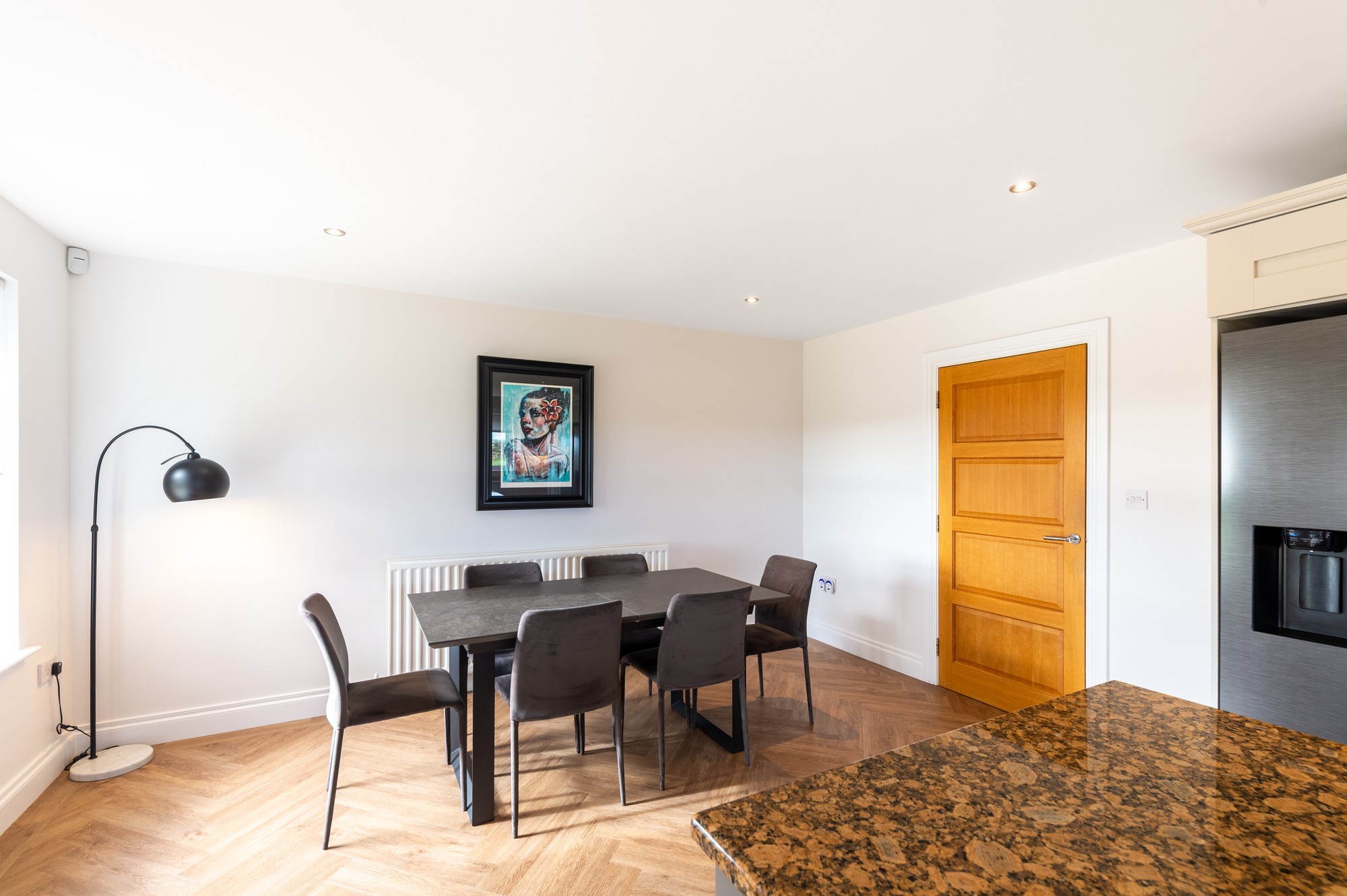 High-Quality Finishes: Herringbone and wooden LVT flooring, oak doors, granite worktops and stylish tiling throughout.