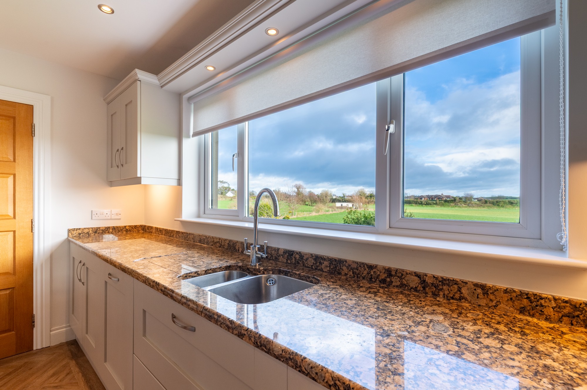 Finished with herringbone and wooden LVT flooring, oak internal doors, granite worktops and stylish tiling, every detail has been carefully considered. Large windows and Velux rooflights flood the home with natural light, enhancing the bright and airy ambience throughout.