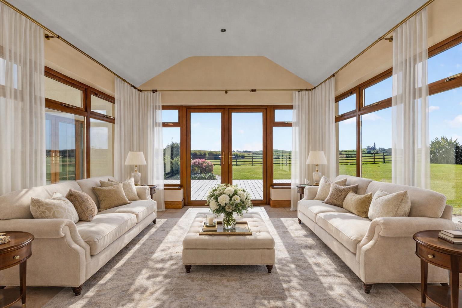 Sun Room with Feature Vaulted Ceiling and French Doors onto the Garden