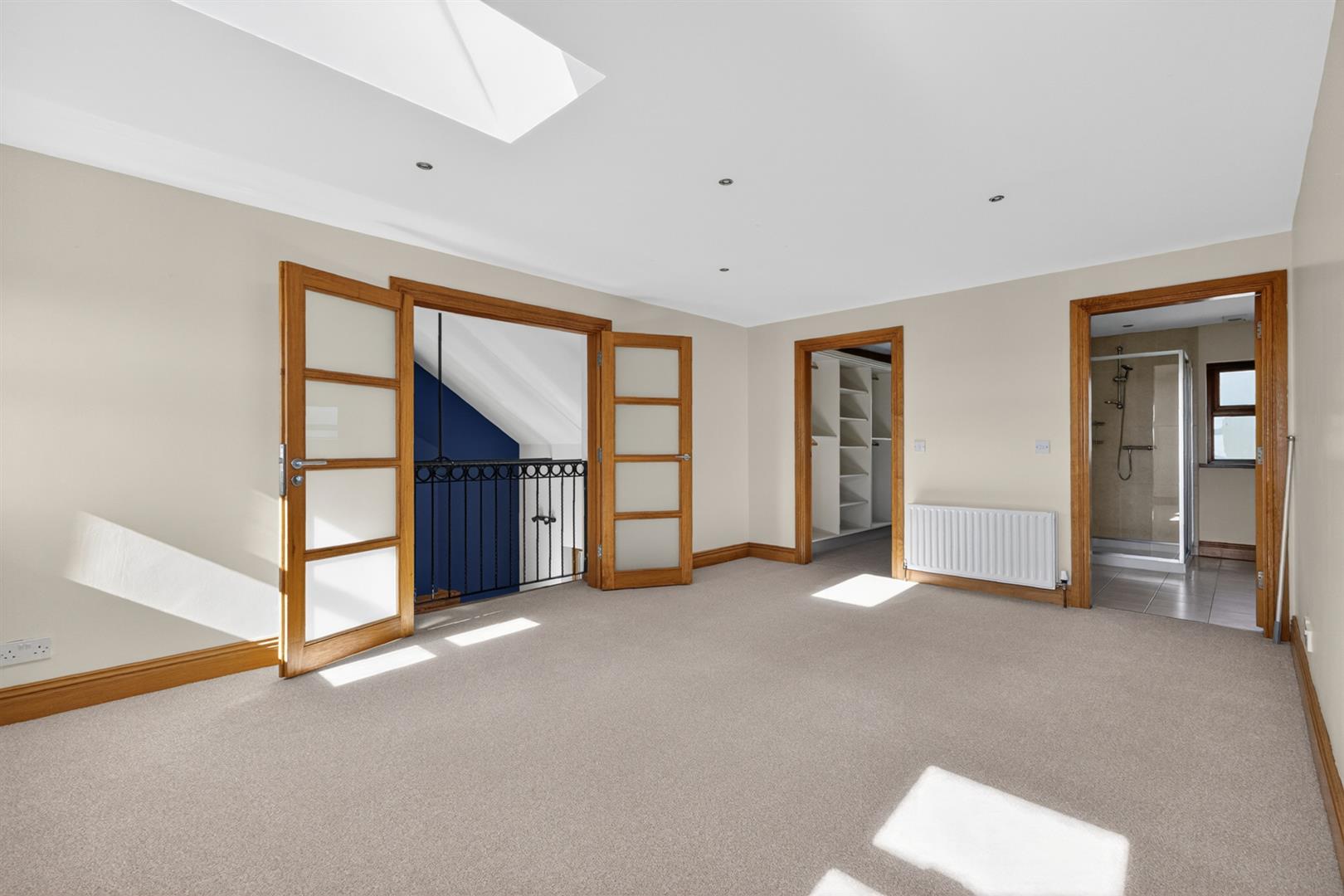 French doors and Juliet balcony overlooking the family room, stunning country views.