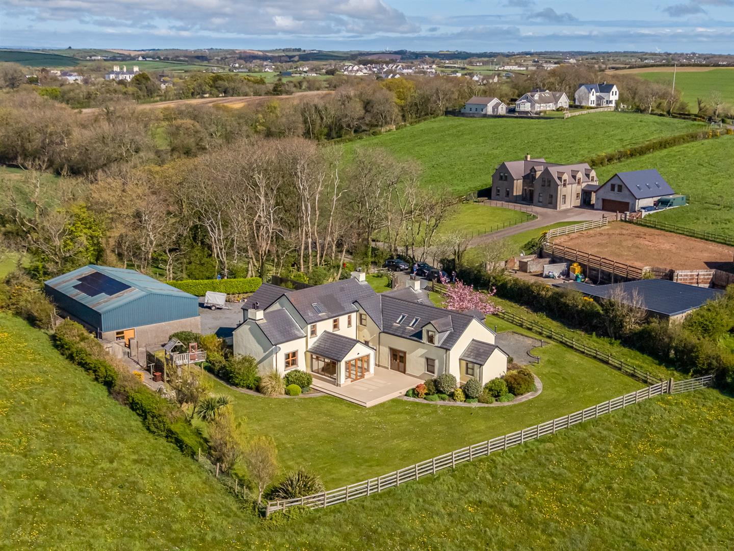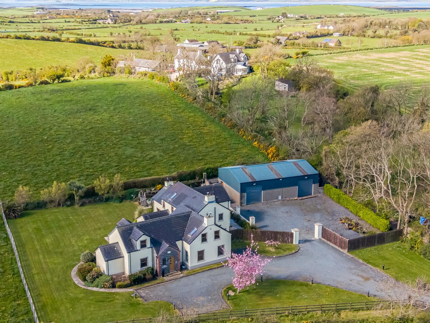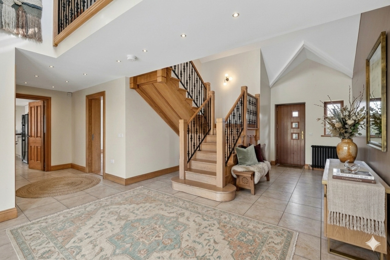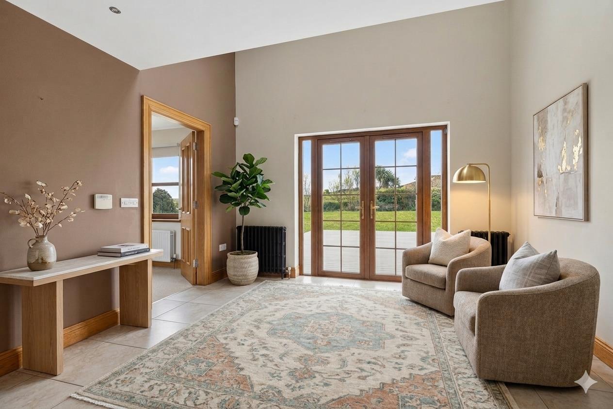 Occupying an idyllic semi-rural site of around an acre, this substantial detached family home extends to approximately 3,200 sq ft and is finished to an exceptional standard, leaving little to do but move in and enjoy. Tucked away down a private laneway shared by only a handful of properties, the setting offers a picturesque country aspect, excellent privacy, and convenient access to Kircubbin, Ballyhalbert, and the scenic coast road.