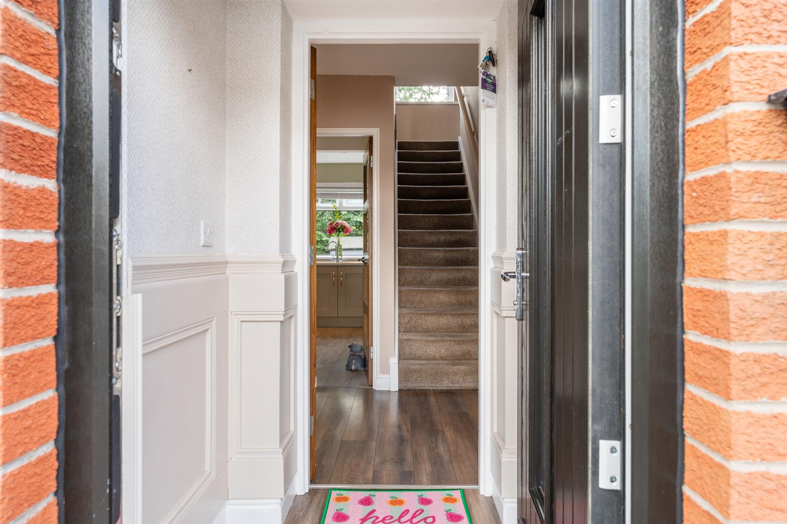 PVC front door, laminate wooden flooring.