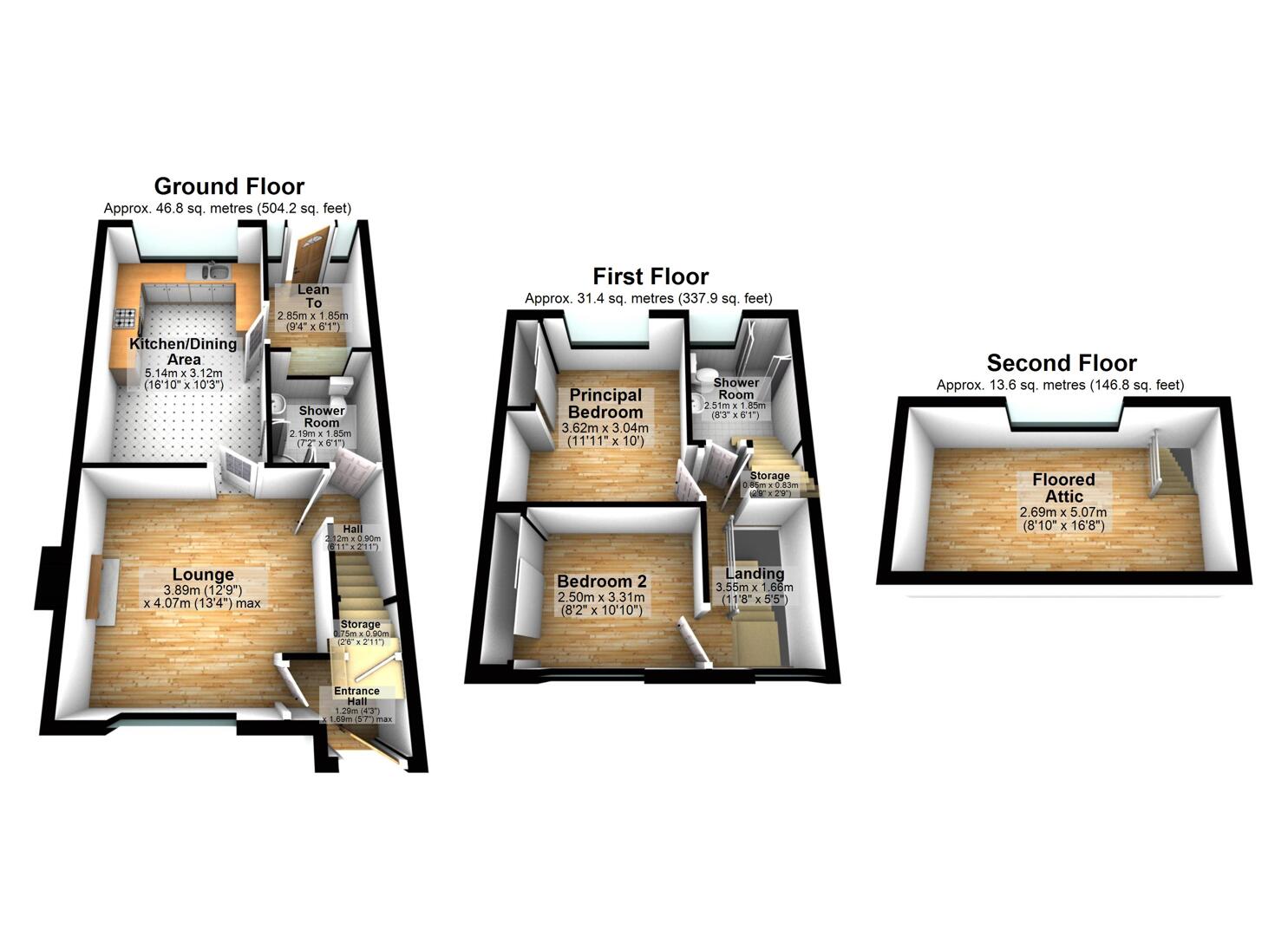 Lean-To Utility Area: 9'4" X 6'1" (2.84m X 1.85m)