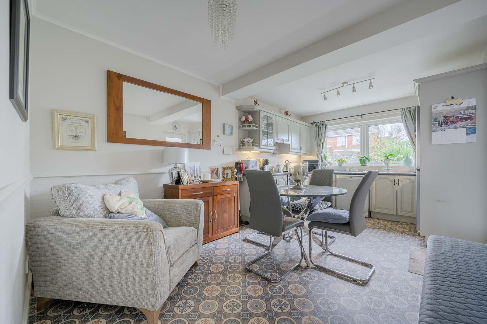 To the rear is a well-appointed kitchen/dining area, offering ample storage, good worktop space, and room for family dining. Its pleasant outlook onto the garden makes it an inviting space for everyday use.