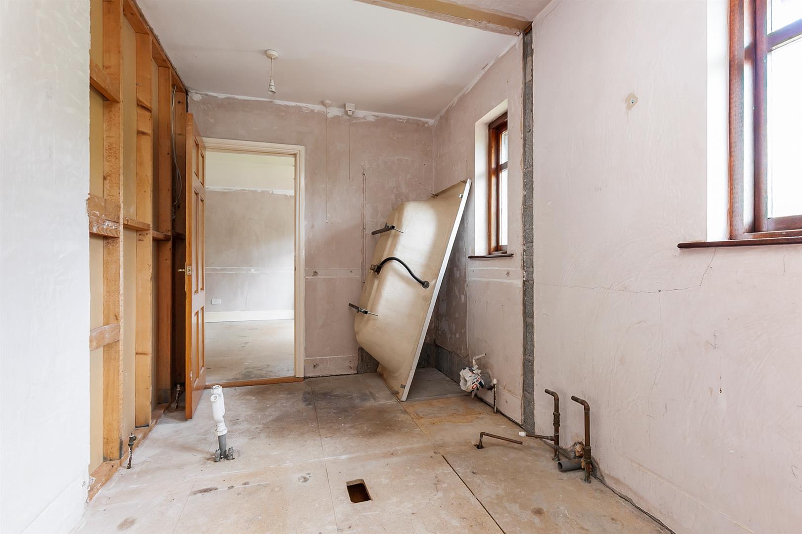 Upstairs, the property provides five well-proportioned bedrooms. The principal bedroom benefits from an ensuite shower room, while a further room is already plumbed for additional bathroom facilities, offering flexibility for modern family living.