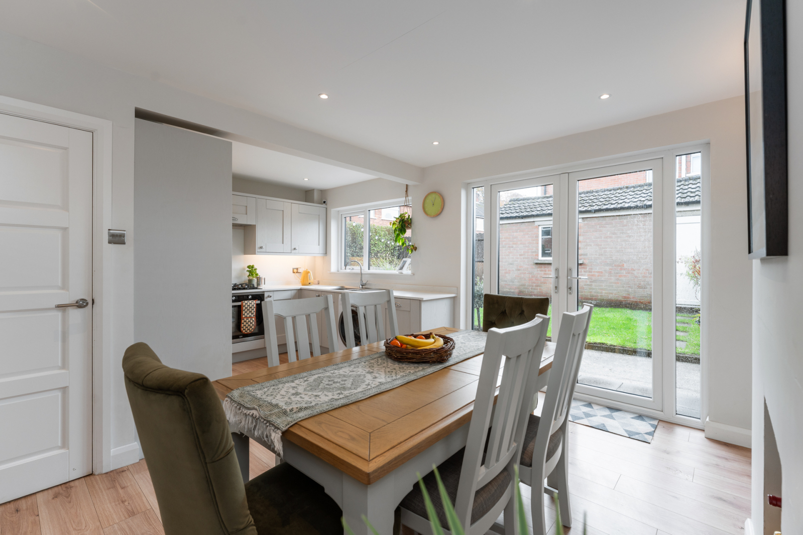 The accommodation comprises of a bright and welcoming living room with wood burning stove, modern fitted kitchen open to a spacious dining area with direct access to the rear garden. To the first floor there are three well-proportioned bedrooms and a contemporary bathroom with a white suite.