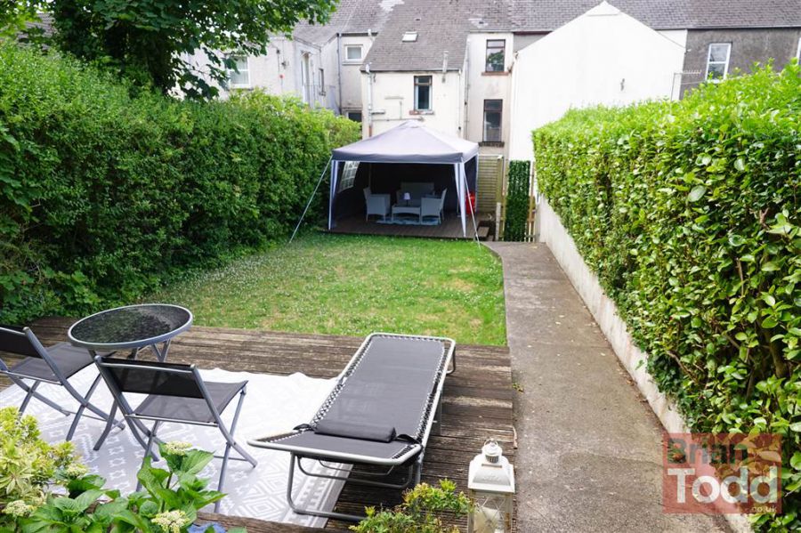 SECLUDED REAR GARDEN IN LAWN WITH FEATURE TWIN DECKING AREAS