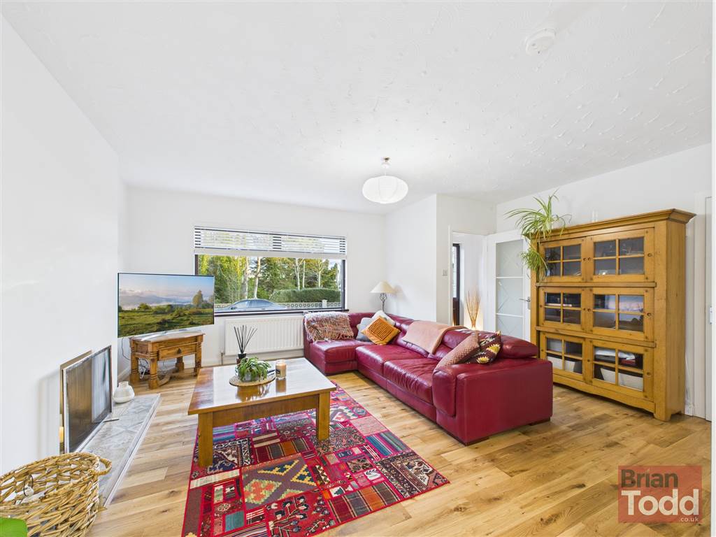 A bright spacious room with raised hearth. Solid Oak flooring.