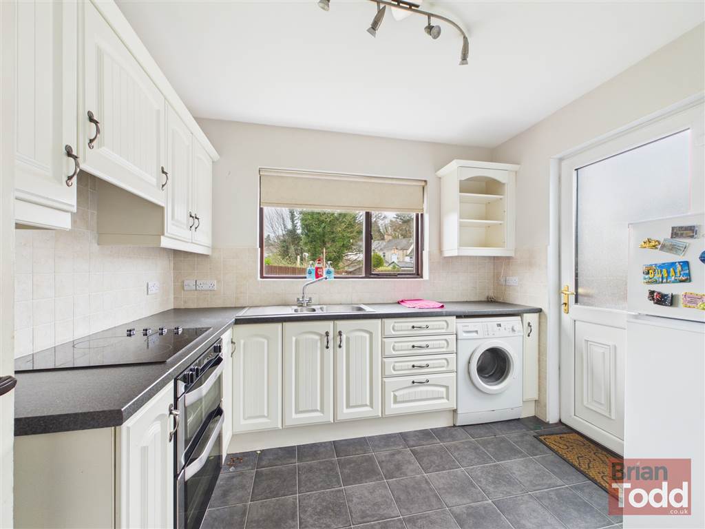 Range of fitted upper and lower level units, incorporating integrated electric hob, oven and extractor fan. Stainless steel sink unit. Plumbed for automatic washing machine.
