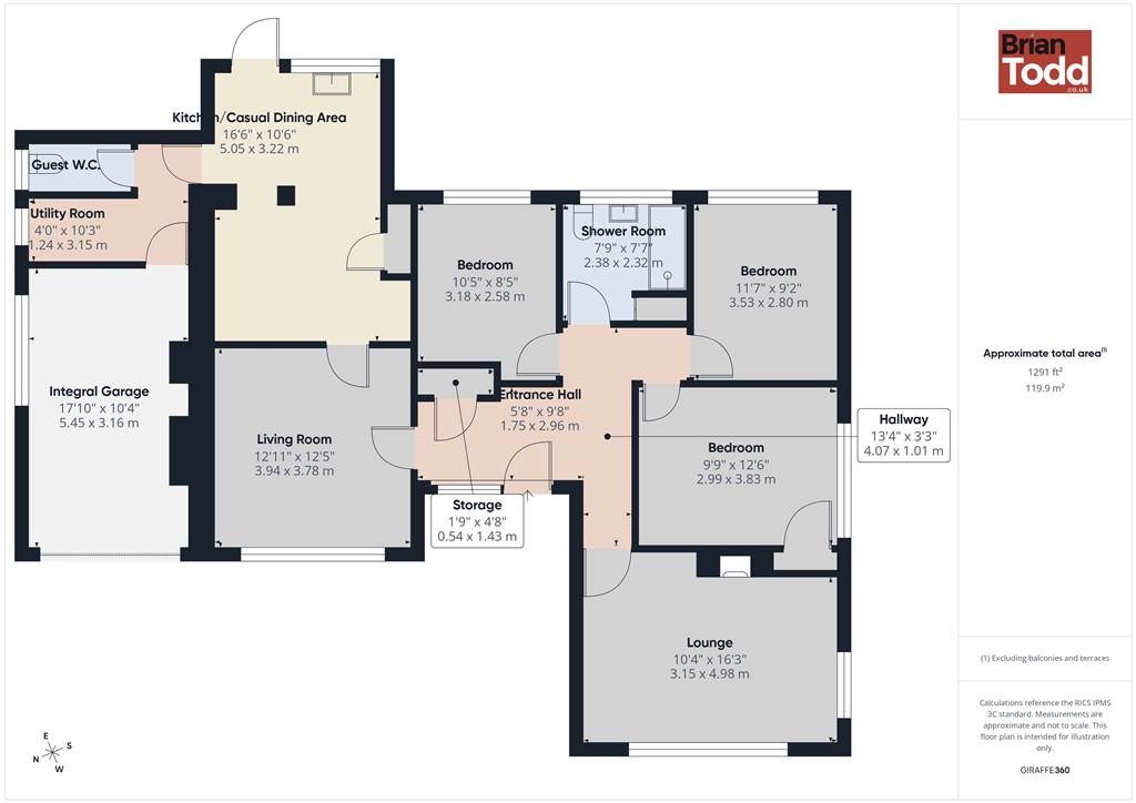 Internally, the accommodation is both generous and versatile, comprising of a bright lounge, separate living room, fitted kitchen with casual dining area, and a separate utility room. There is also a convenient Guest W.C., three well proportioned bedrooms, and a modern shower room, making the home perfectly suited to comfortable family living or those seeking single level accommodation.