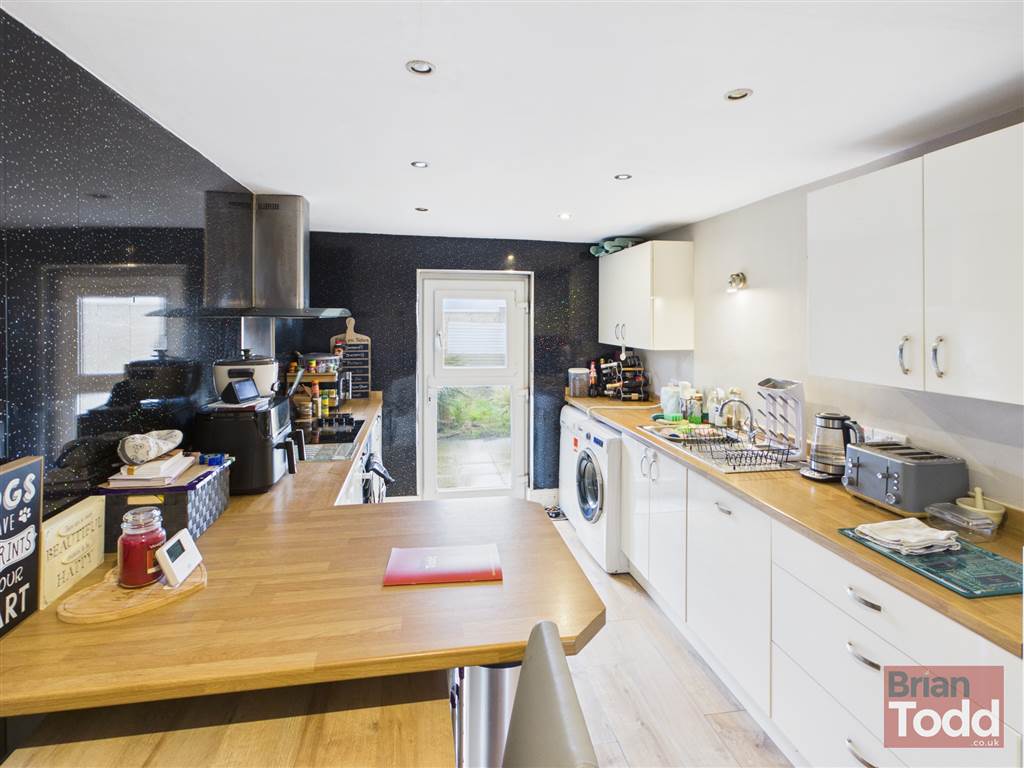 Externally, the home benefits from a walled front garden laid in lawn, while the rear offers a private enclosed flagged patio area with additional access beyond, ideal for outdoor relaxation or entertaining.