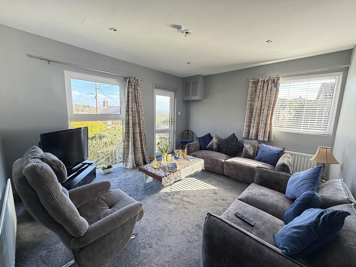 Views towards Larne Town. UPVC double glazed door leading to garden.