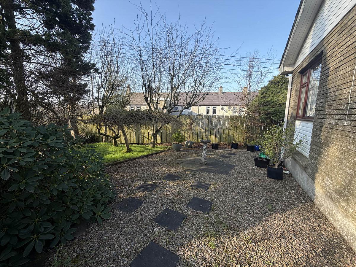 Asphalt drive way to front providing ample parking for multiple cars. Mature gardens with side in lawn with an array of trees and shrubs. Rear garden part stoned part in lawn bordered with shrubs bounded by wall & fencing. UPVC oil tank.
