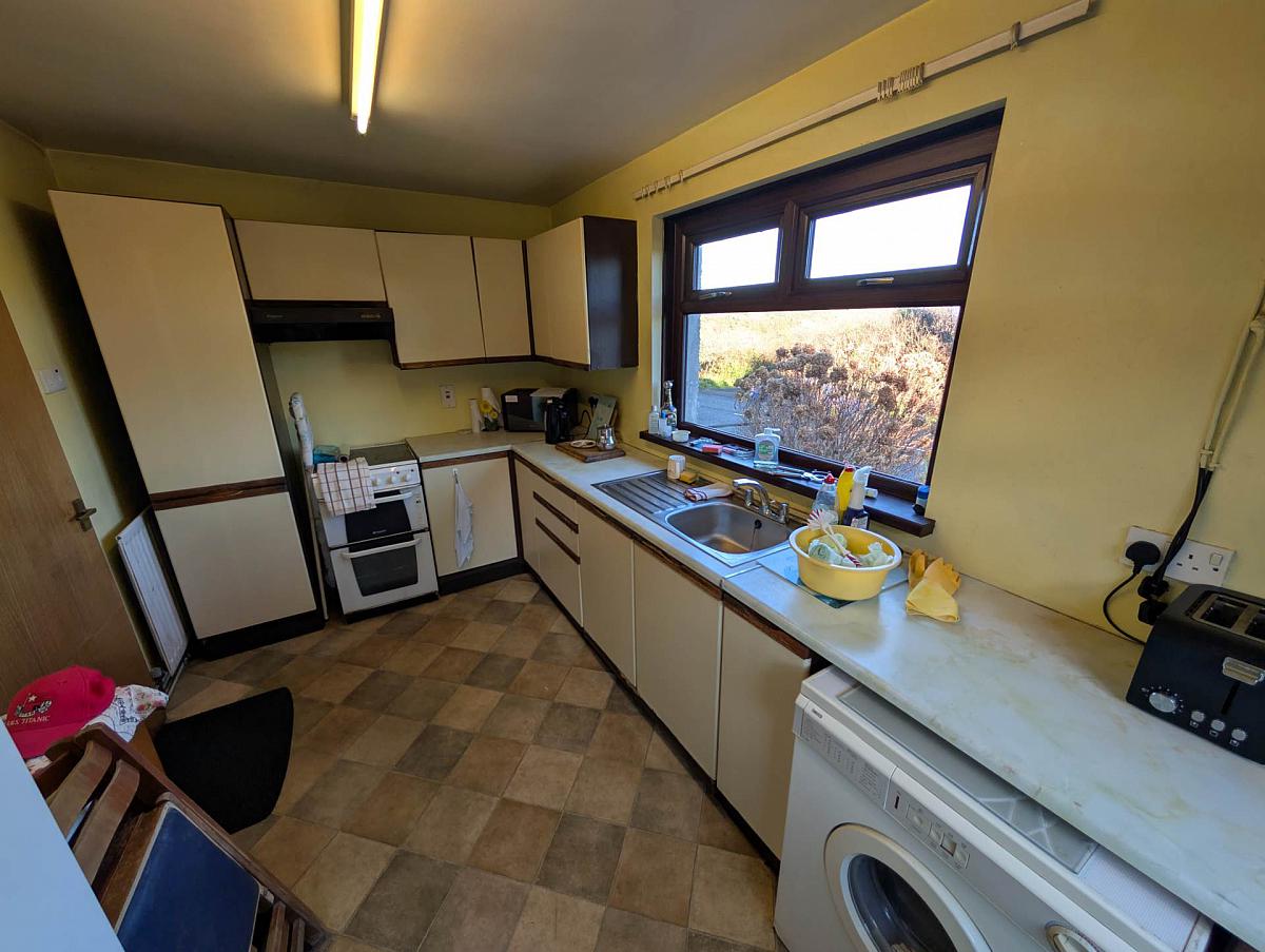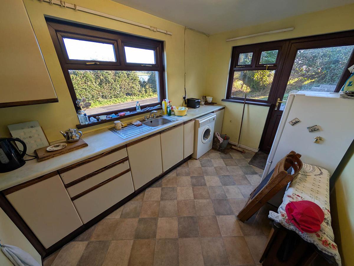 Good range of high & low level units. Single drainer stainless steel sink unit. Double glazed side door to garden.