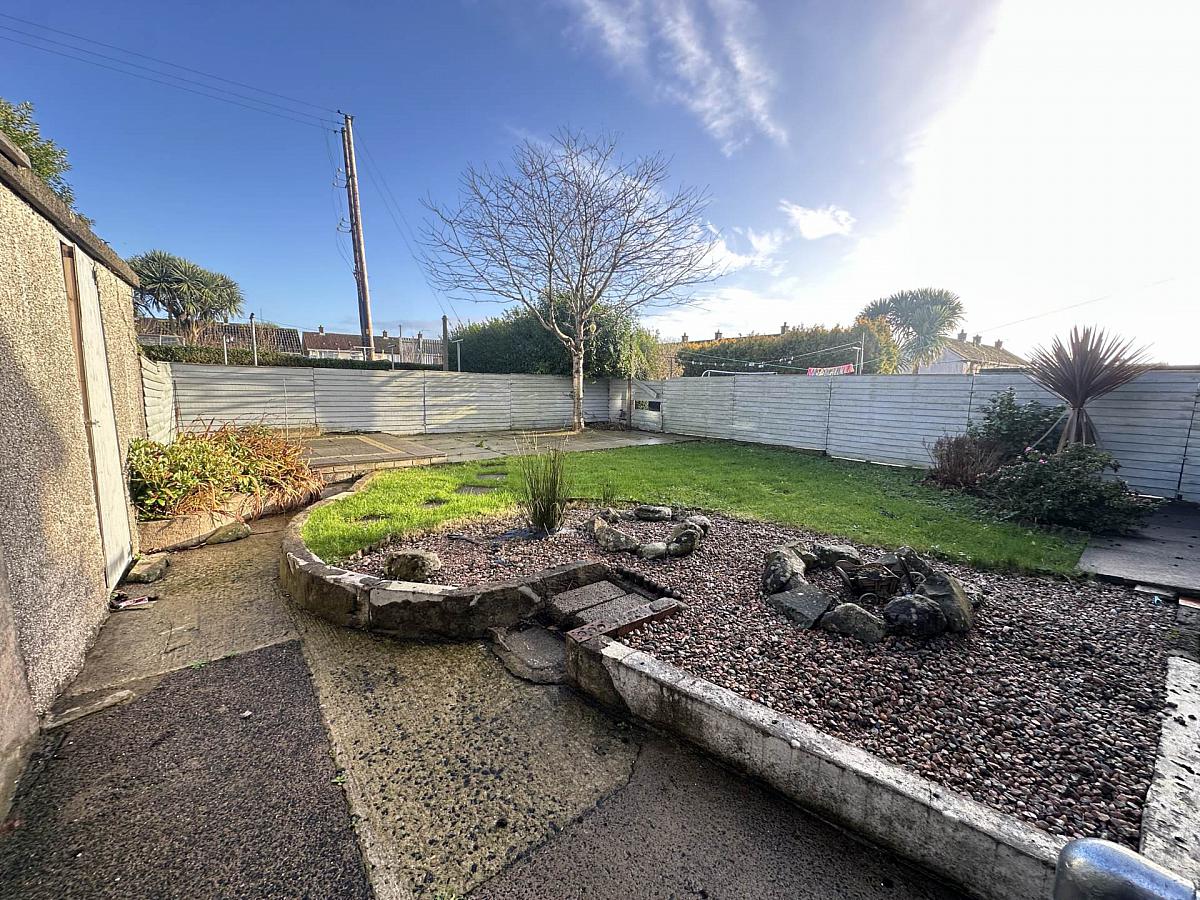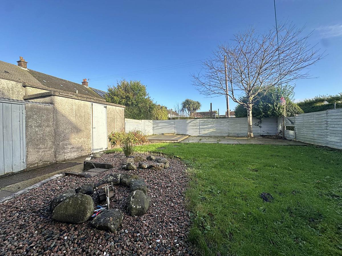Front garden with double entrance gates and pedestrian gate bounded by wall. Safely enclosed rear garden part in lawn, part paved and part stoned bounded by fencing. Boiler house and storage shed with power.