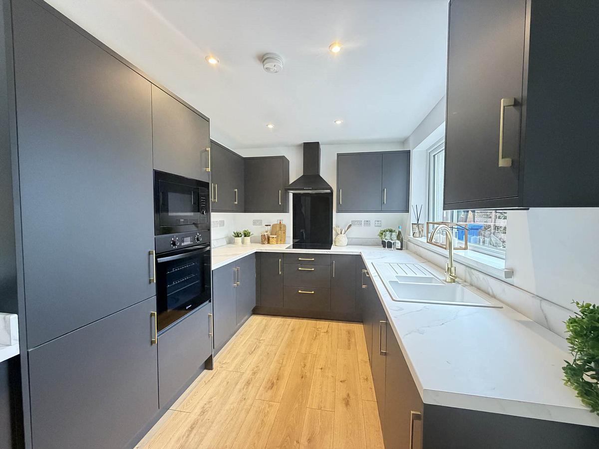 Brand new contemporary fitted kitchen with vast range of storage and appliances