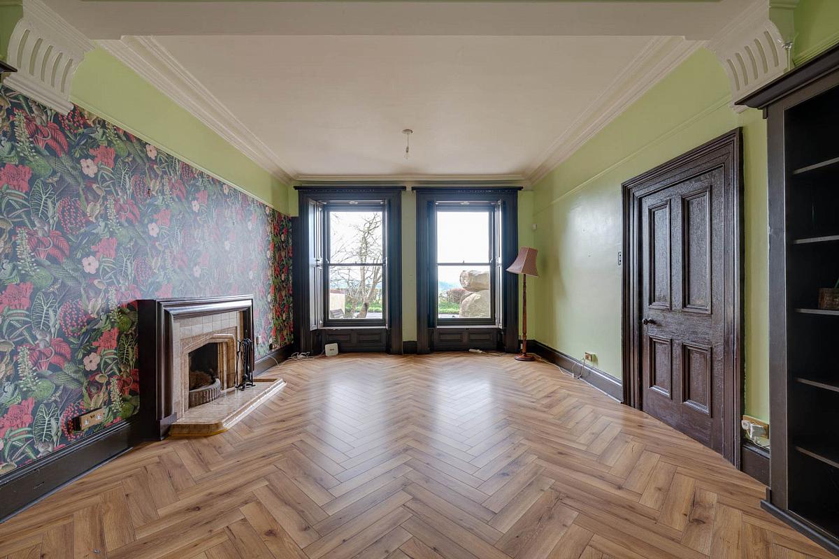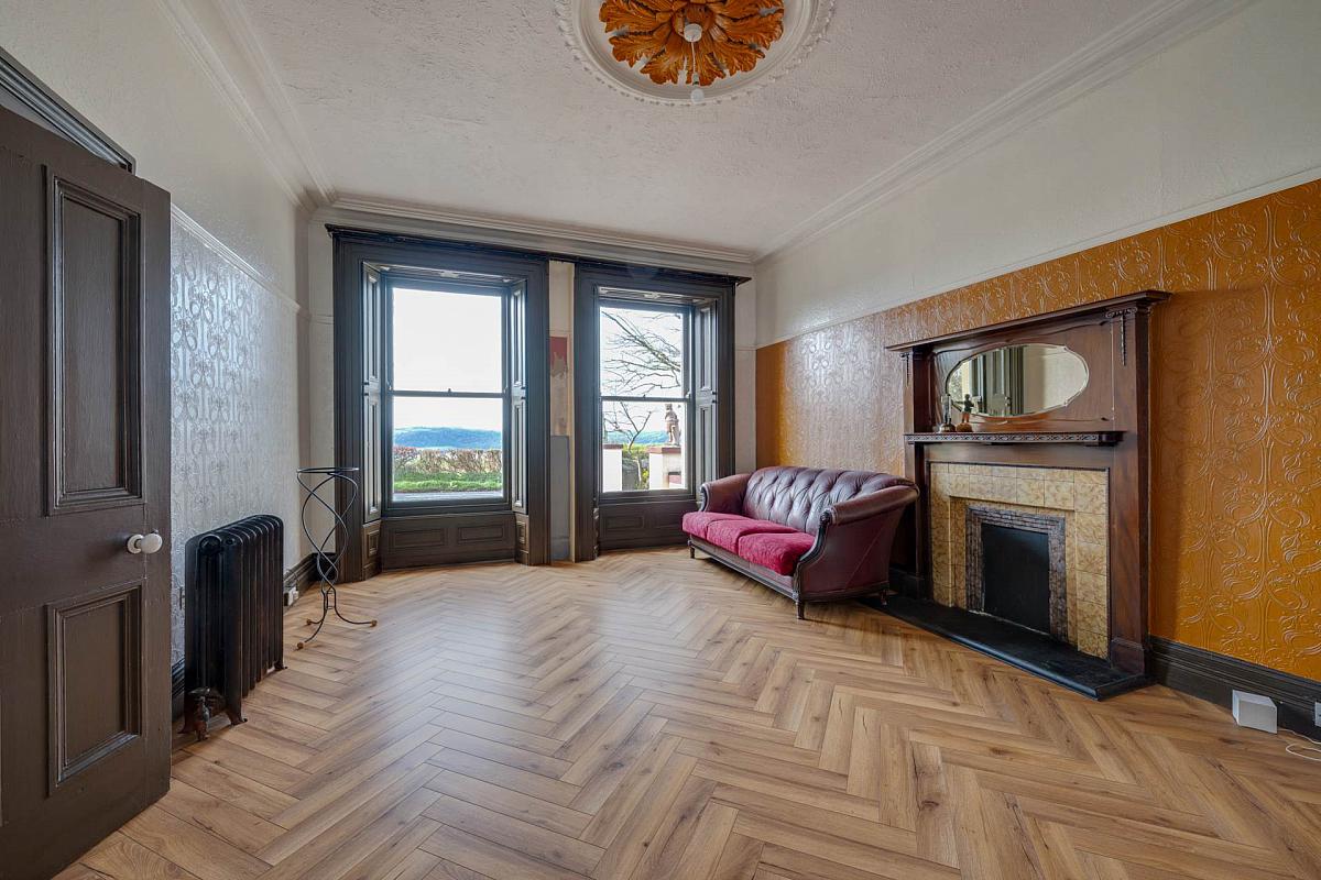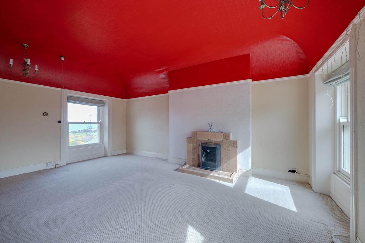 Tiled fireplace with tiled hearth. Dual aspect Far reaching sea views.