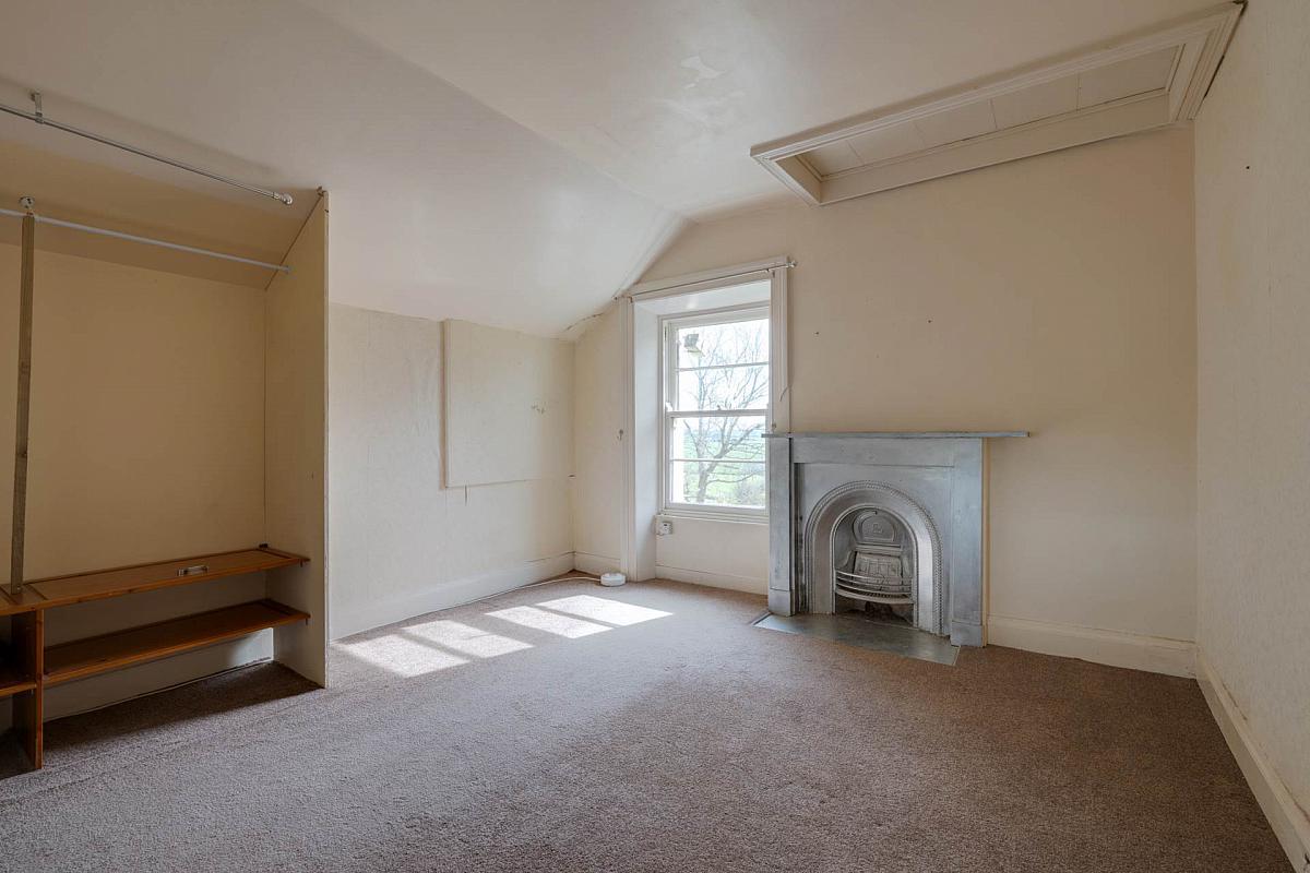 Solid pine strip floor. Antique style cast iron fireplace. Cast iron school type radiator. Access to floored roof space.