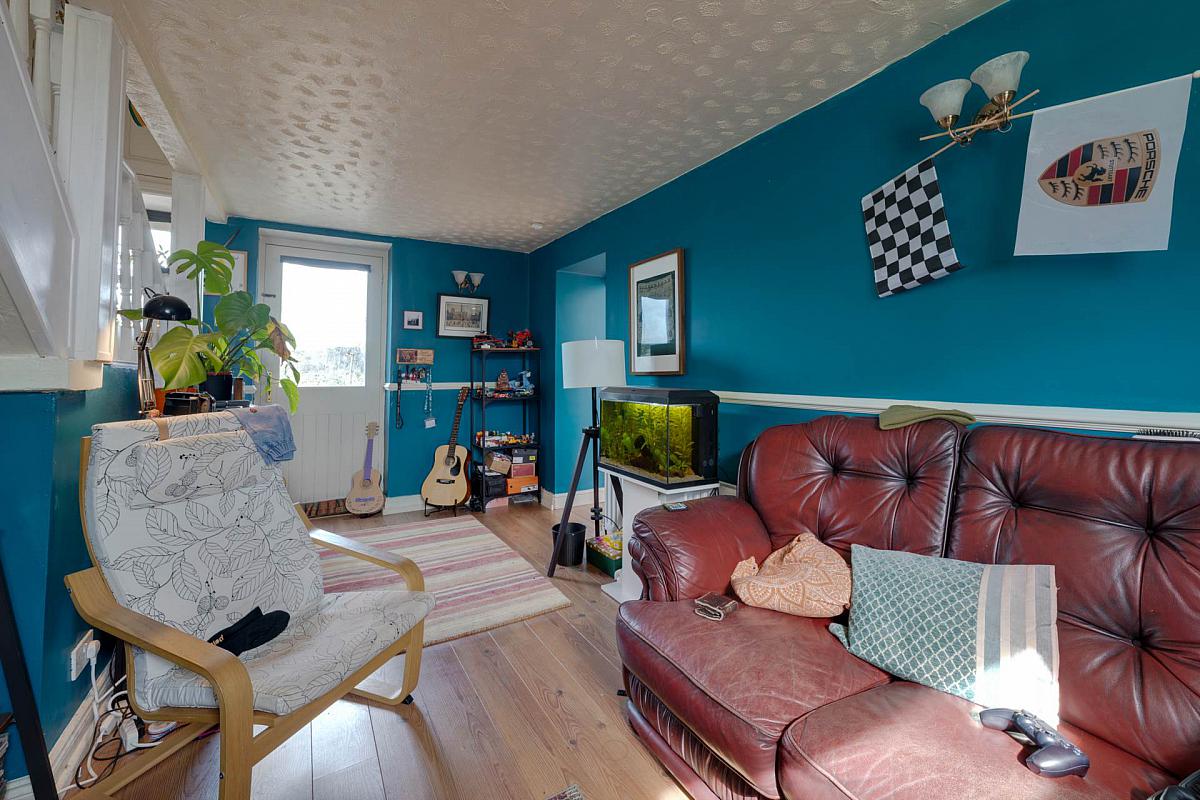 Pine strip flooring. Understairs cupboard. Double glazed door to garden. Door leading to shower room and internal courtyard, Dado rail. Wall light point.