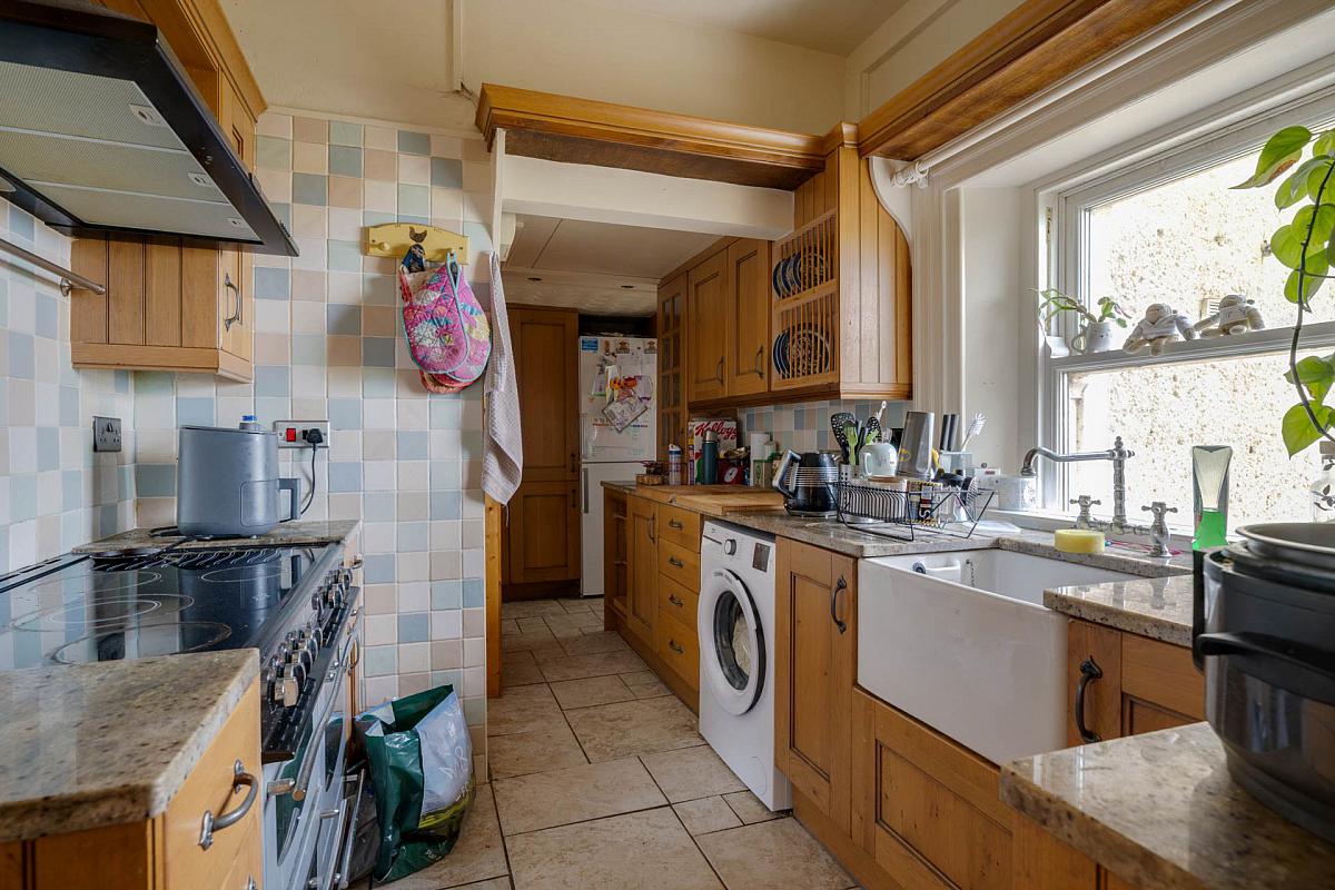 level units. Original bread oven. Tiled floor. Plumbed for automatic washing machine and dishwasher. Plumbed for American fridge.