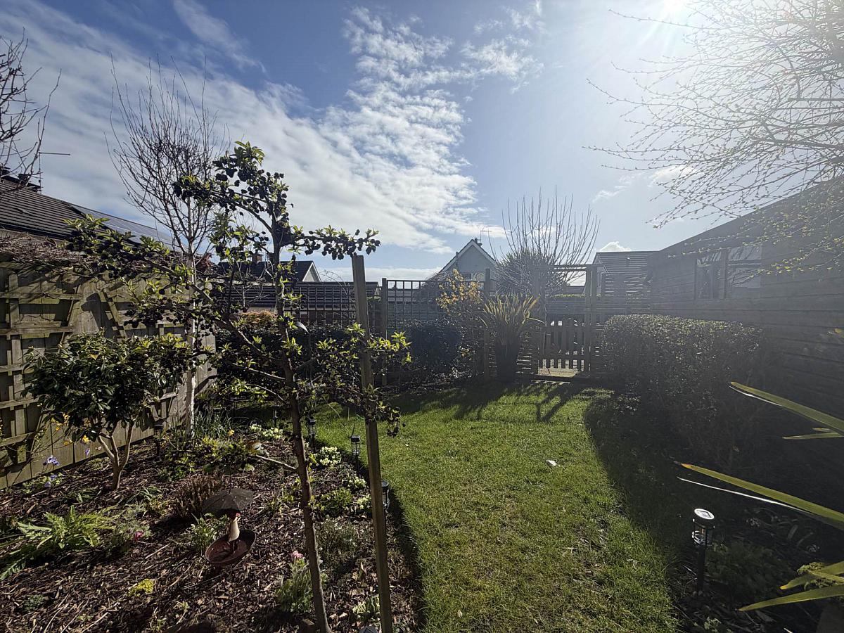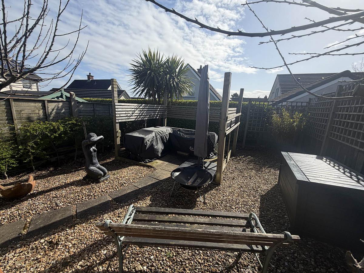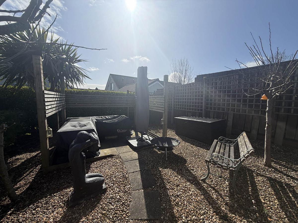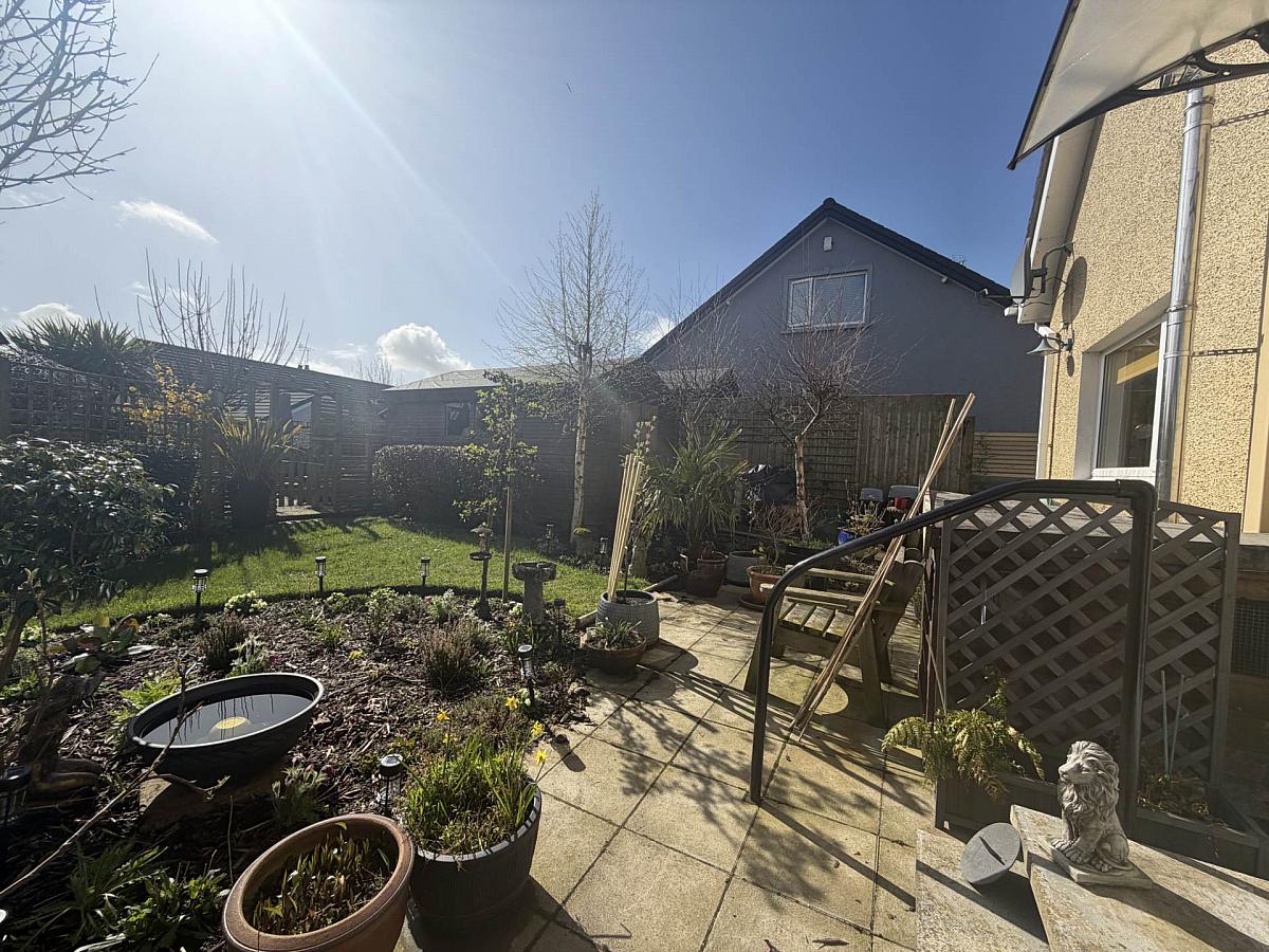 Front garden in lawn with an array of trees. Tarmac driveway to side providing off street parking. Enclosed bin storage area. Rear garden in lawn with an array of trees & shrubs. Private stoned seating area.