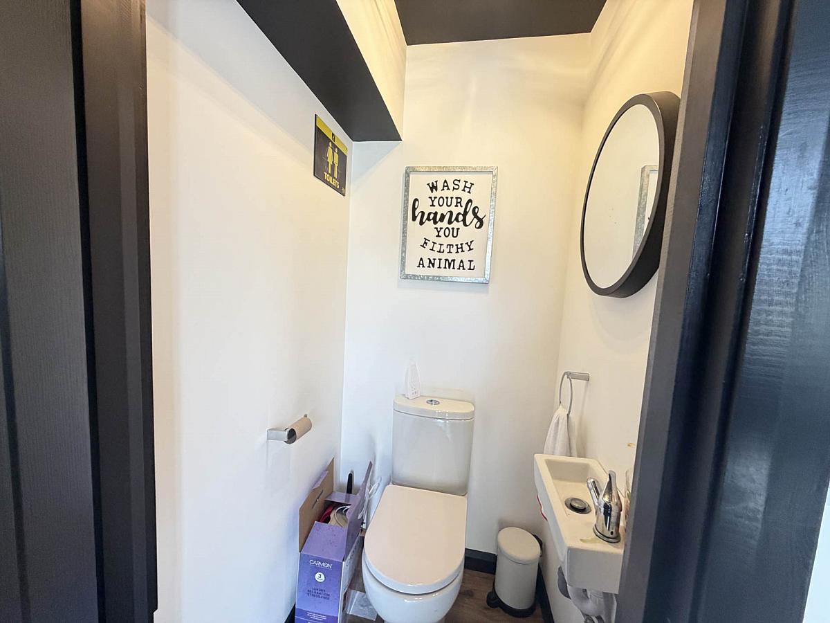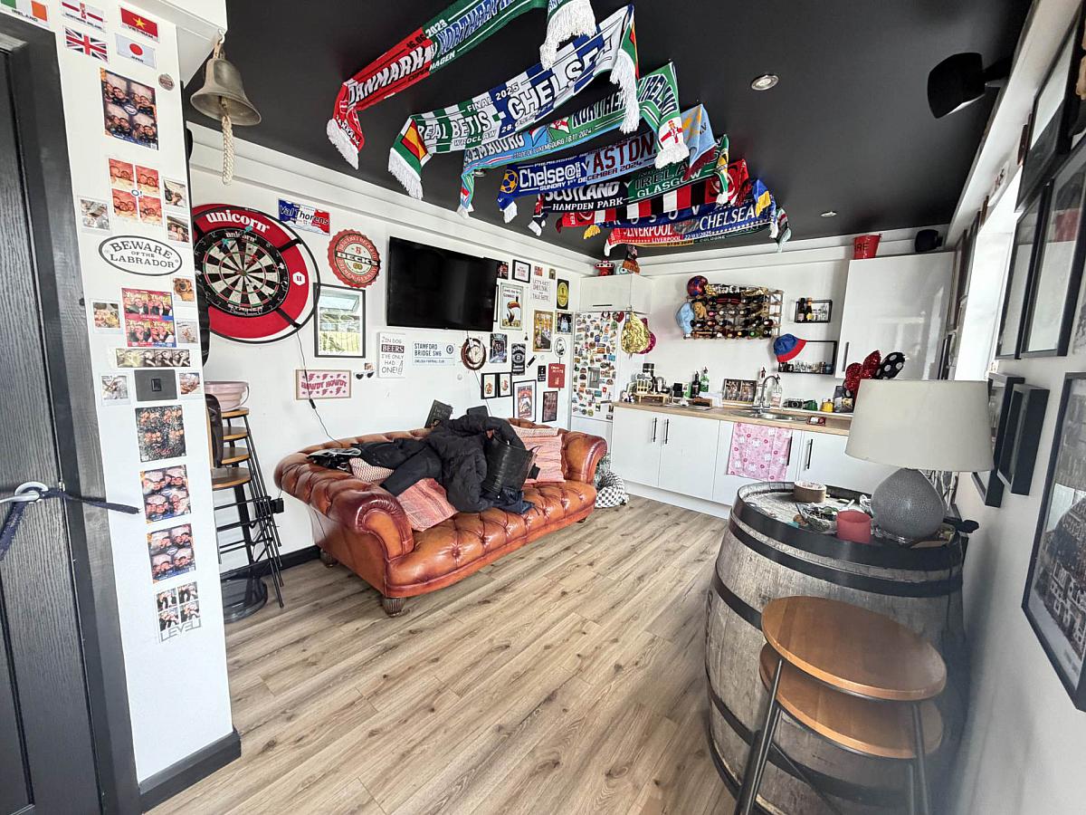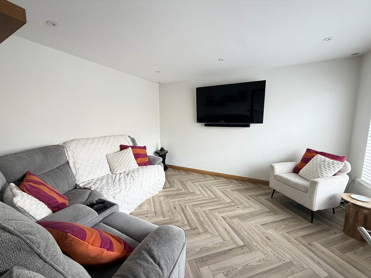 Light, power and plumbed. High & low level gloss units. Stainless steel sink unit. Cloakroom with low flush WC and wash hand basin. Laminate wood floor. UPVC door.