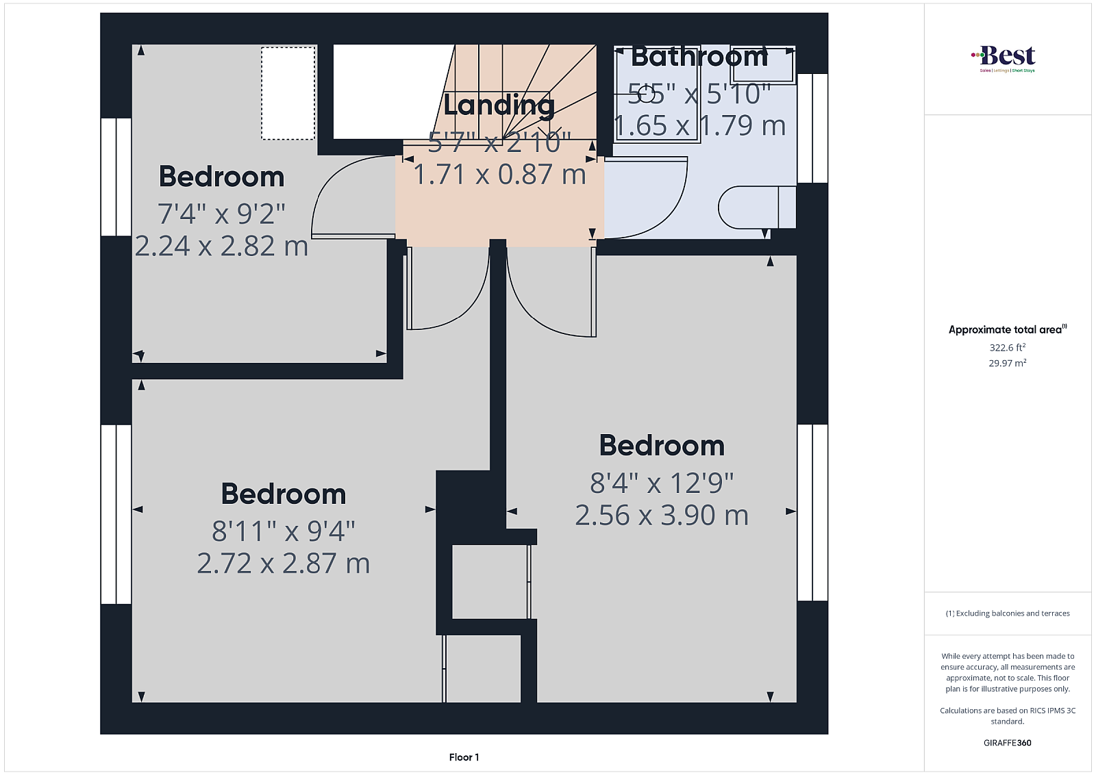 Bedroom 3 w: 2.26m x l: 2.85m (w: 7' 5" x l: 9' 4")