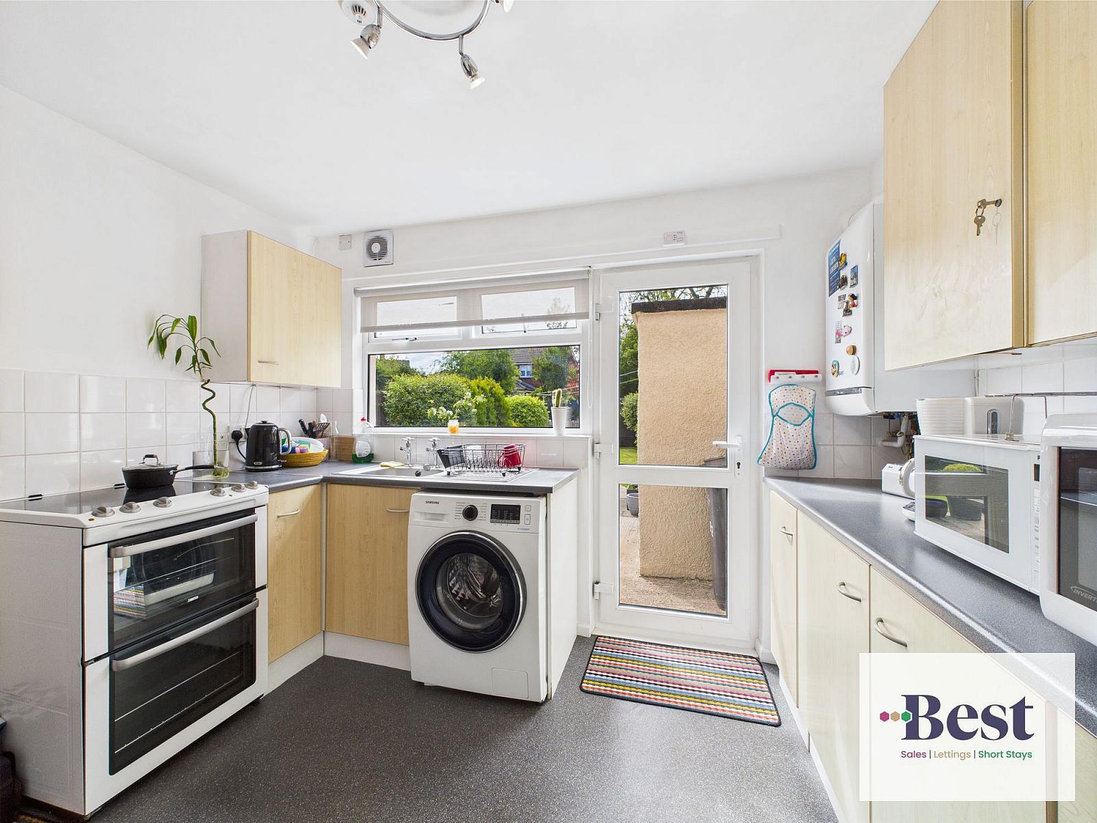 Good range of high and low level units. Space for appliances and plumbed for utilities. Ample room for table. Door to rear garden