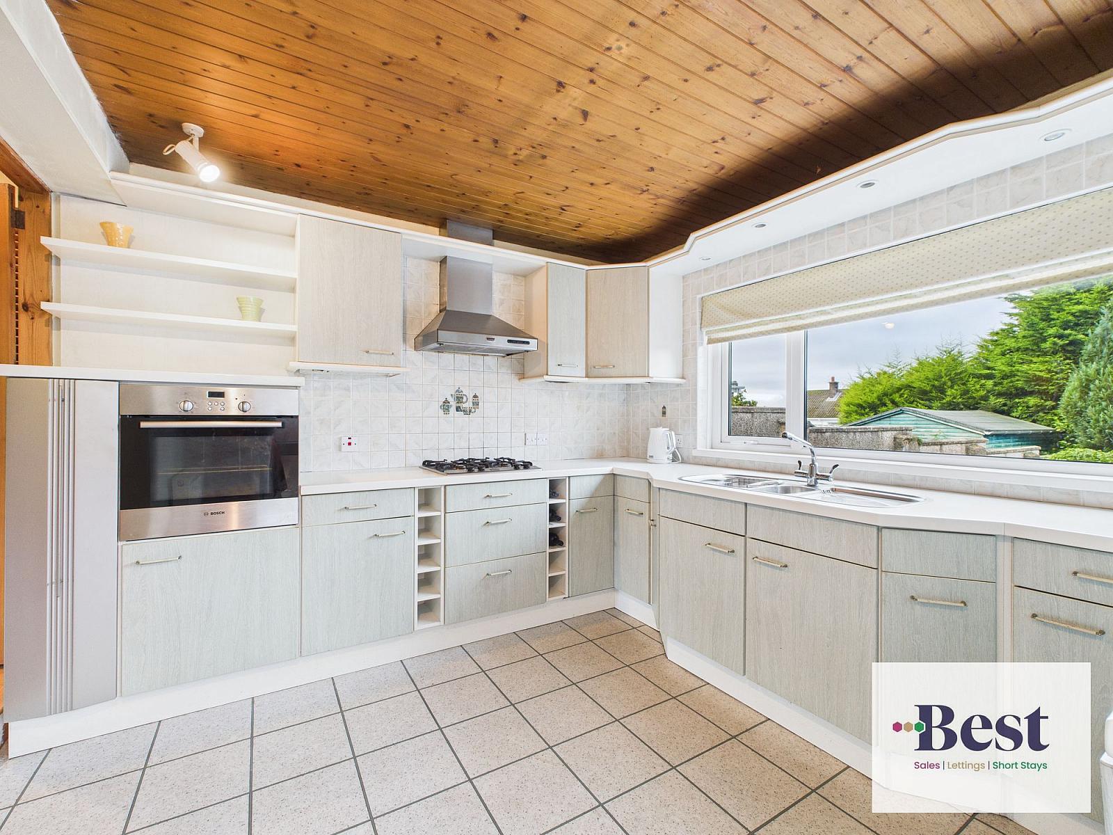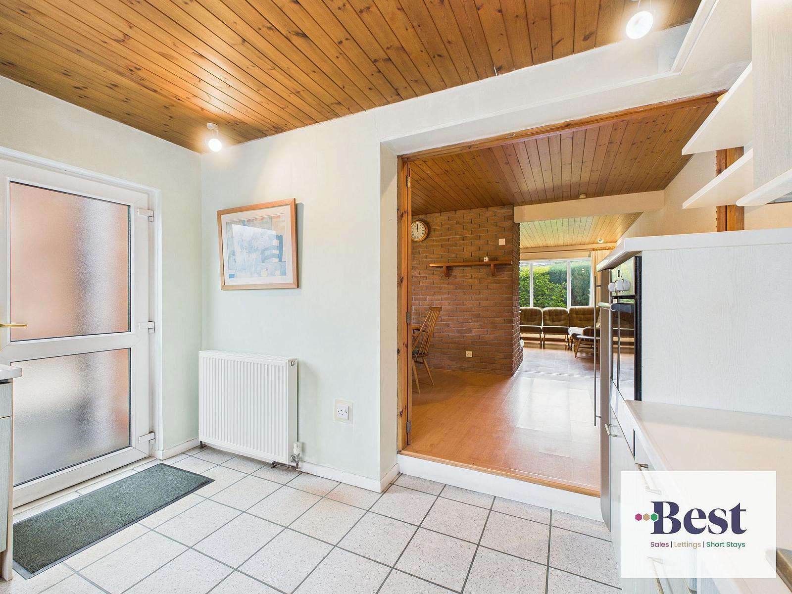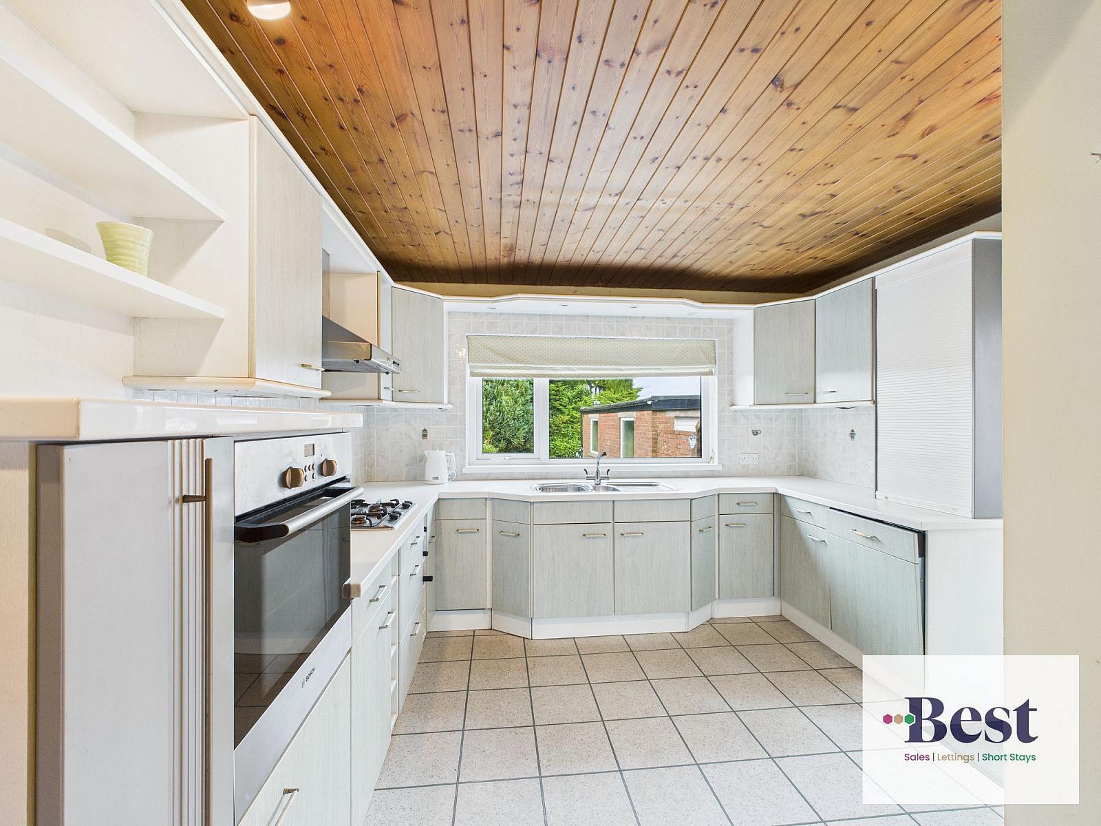 Large kitchen extension with an excellent range of high and low level units, four ring gas hob and built in oven and integrated dishwasher. Bright space. tiled splashback and tiled flooring. Door to rear garden.