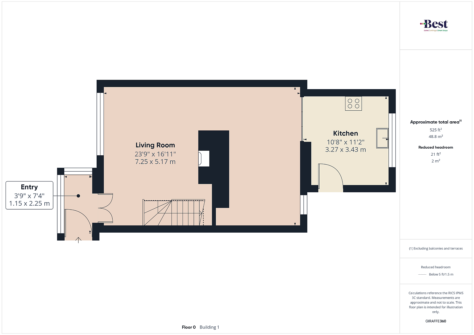 Kitchen w: 3.27m x l: 3.43m (w: 10' 9" x l: 11' 3")