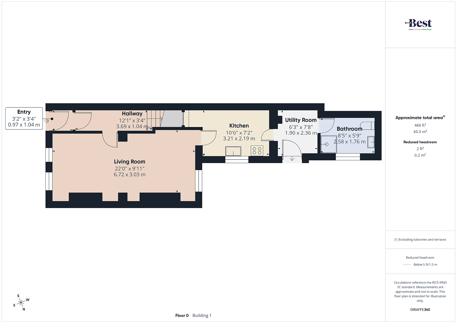 Living room w: 6.72m x l: 3.03m (w: 22' 1" x l: 9' 11")