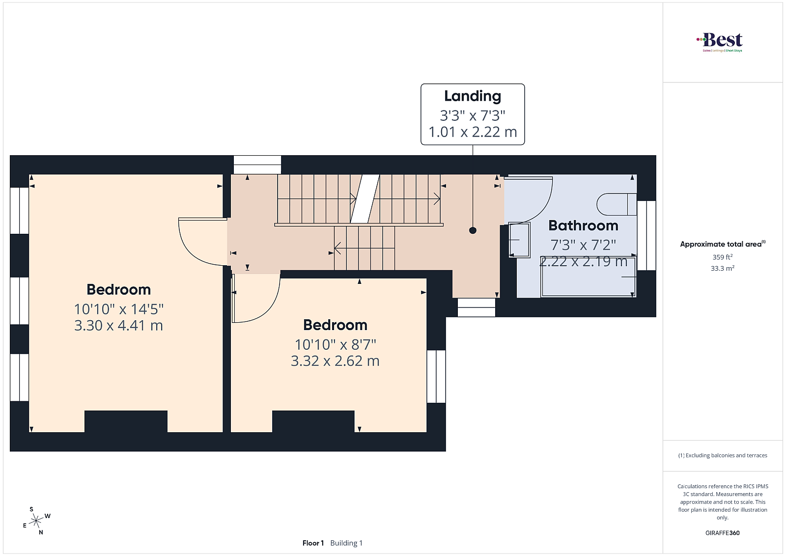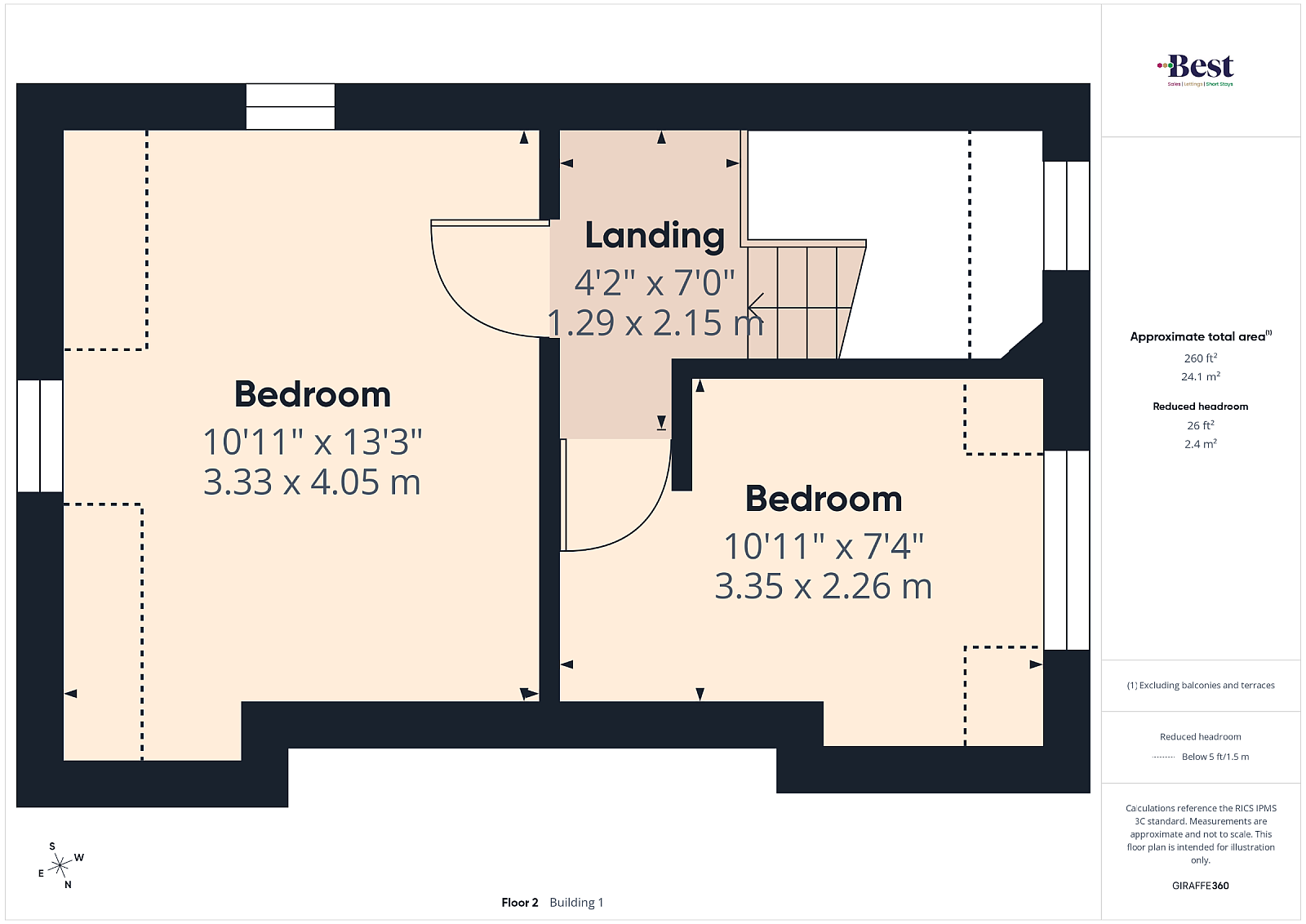 Bedroom 1 w: 3.32m x l: 2.62m (w: 10' 11" x l: 8' 7")