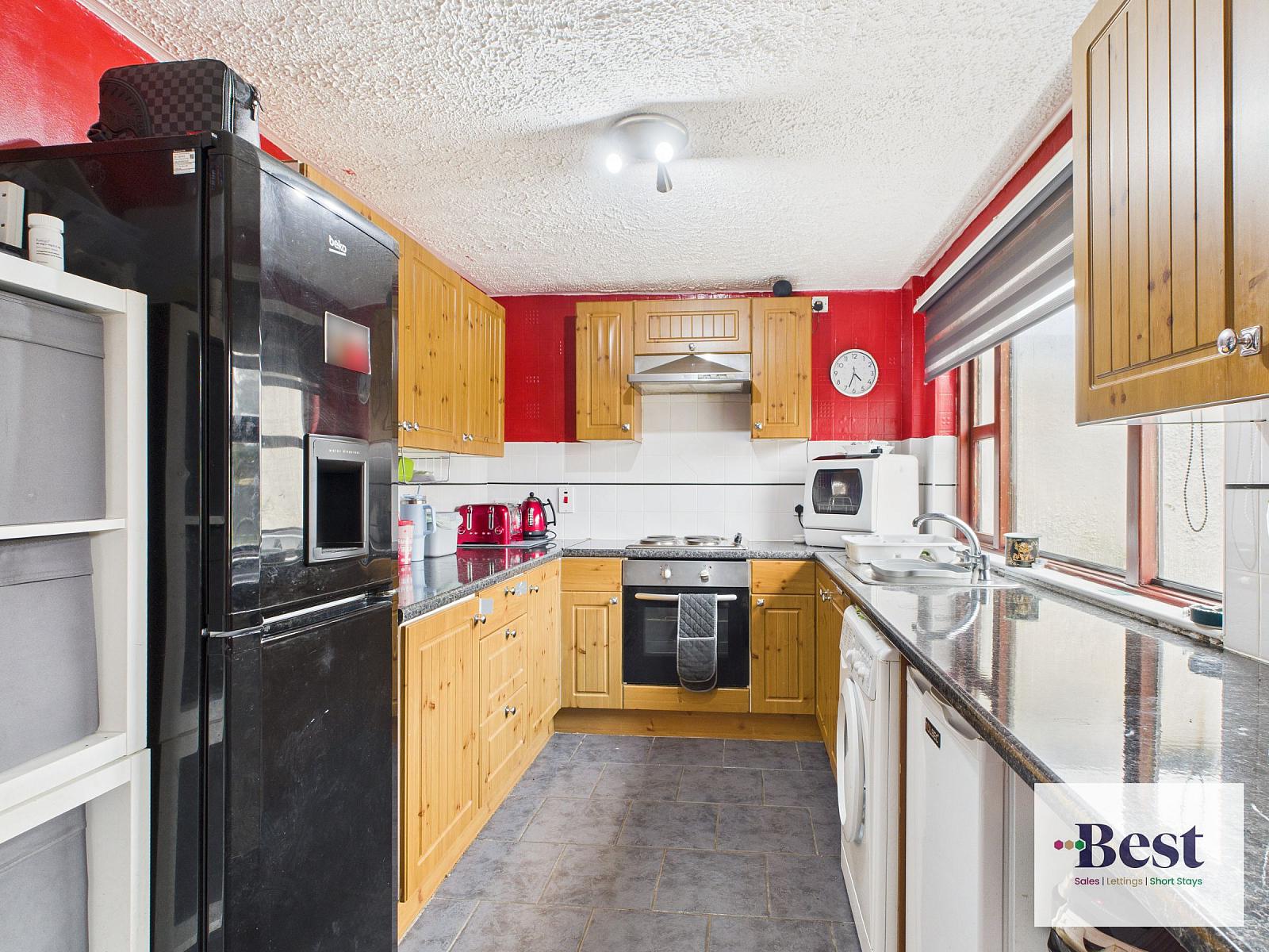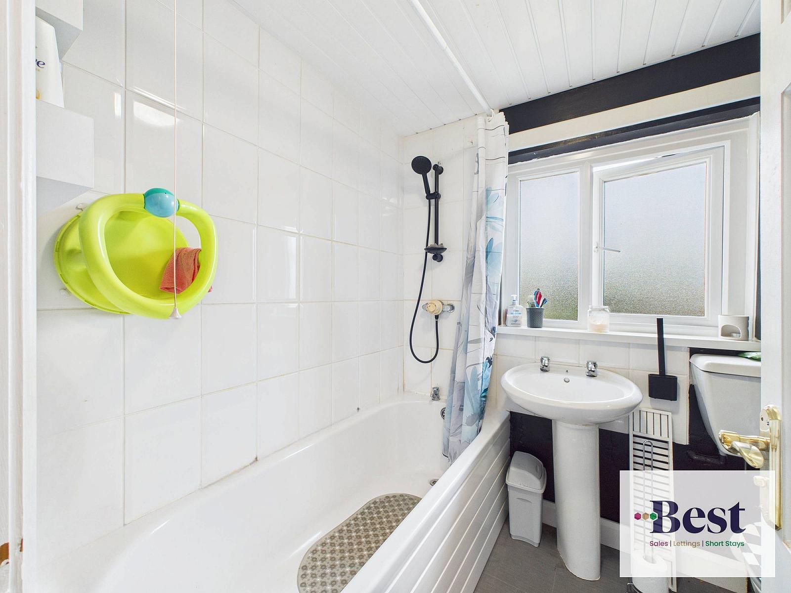 Good sized kitchen with excellent range of high and low level units. Laminated worktops, integrated electric oven, 4 ring electric hob and under-counter space for washer / dryer. Space for freestanding fridge / freezer. Large rear facing window allowing lots of natural light with access to rear garden.