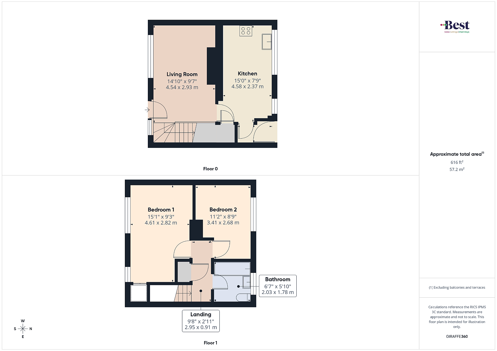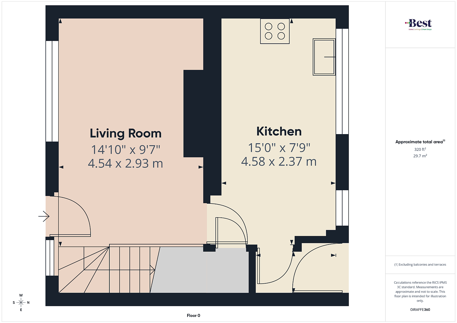 Living room w: 4.54m x l: 2.93m (w: 14' 11" x l: 9' 7")