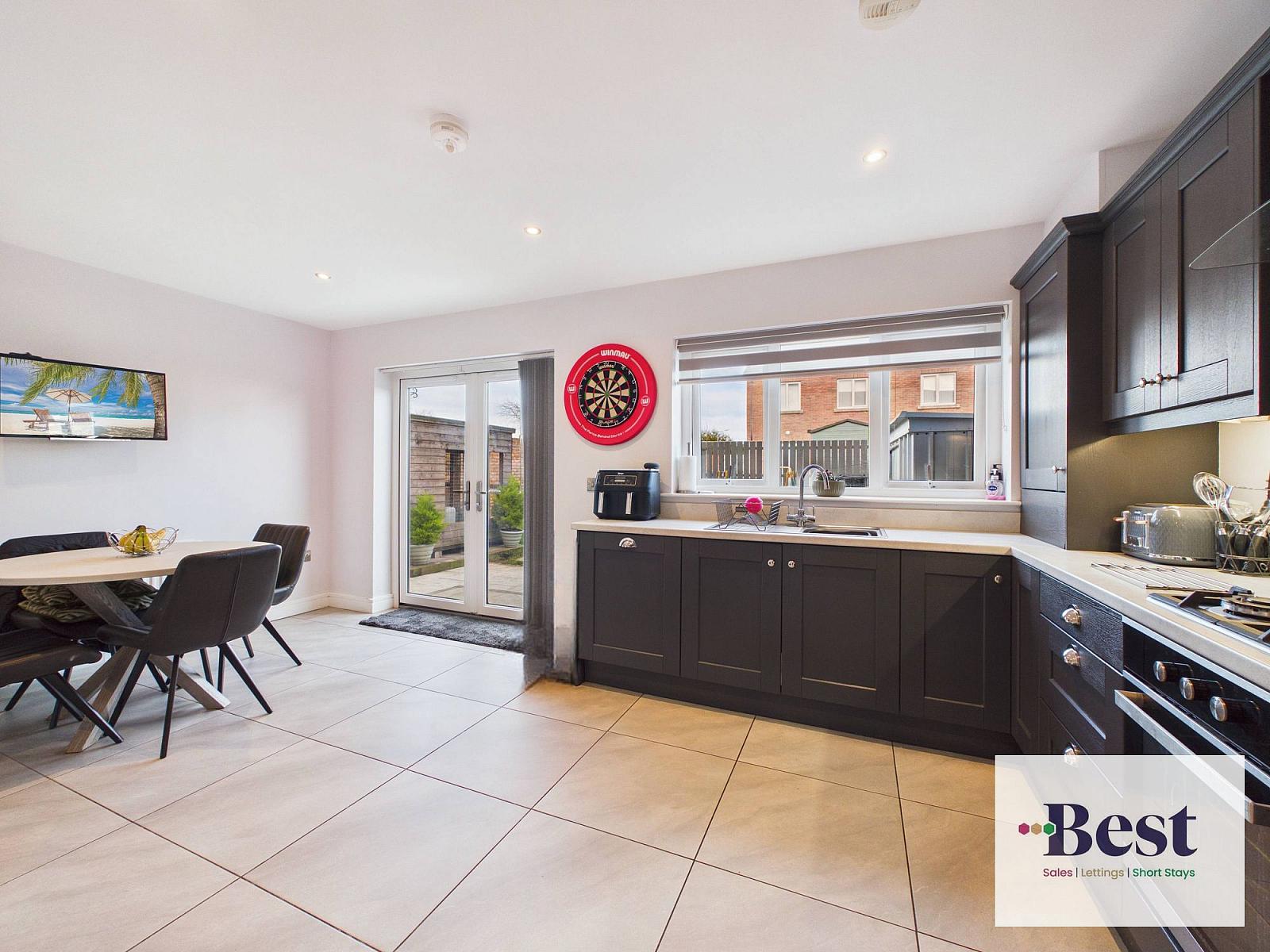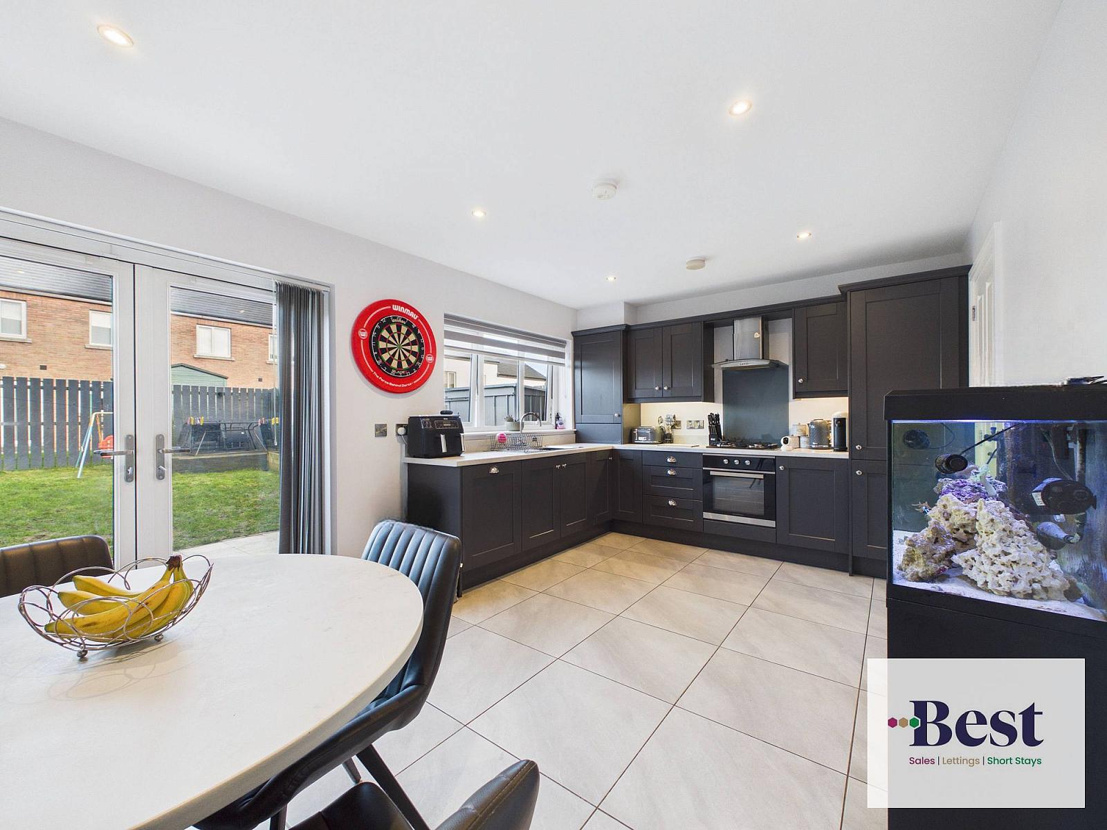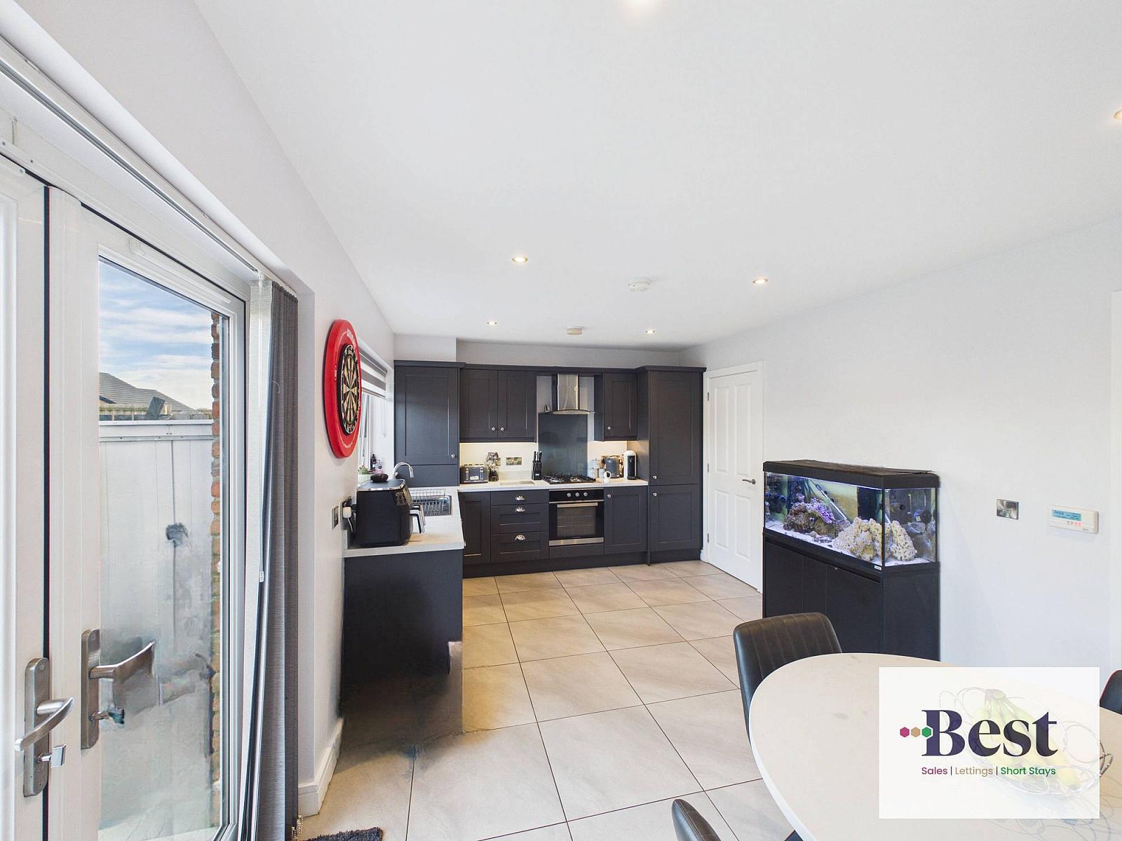 Integrated dishwasher and integrated fridge freezer. Ample space for dining. French Doors to rear garden. Tiled flooring