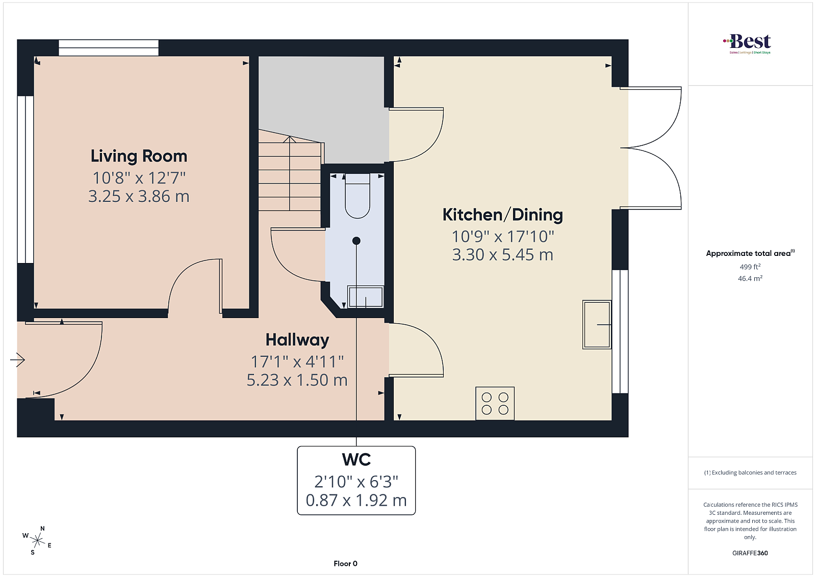 Living room w: 3.87m x l: 3.25m (w: 12' 8" x l: 10' 8")
