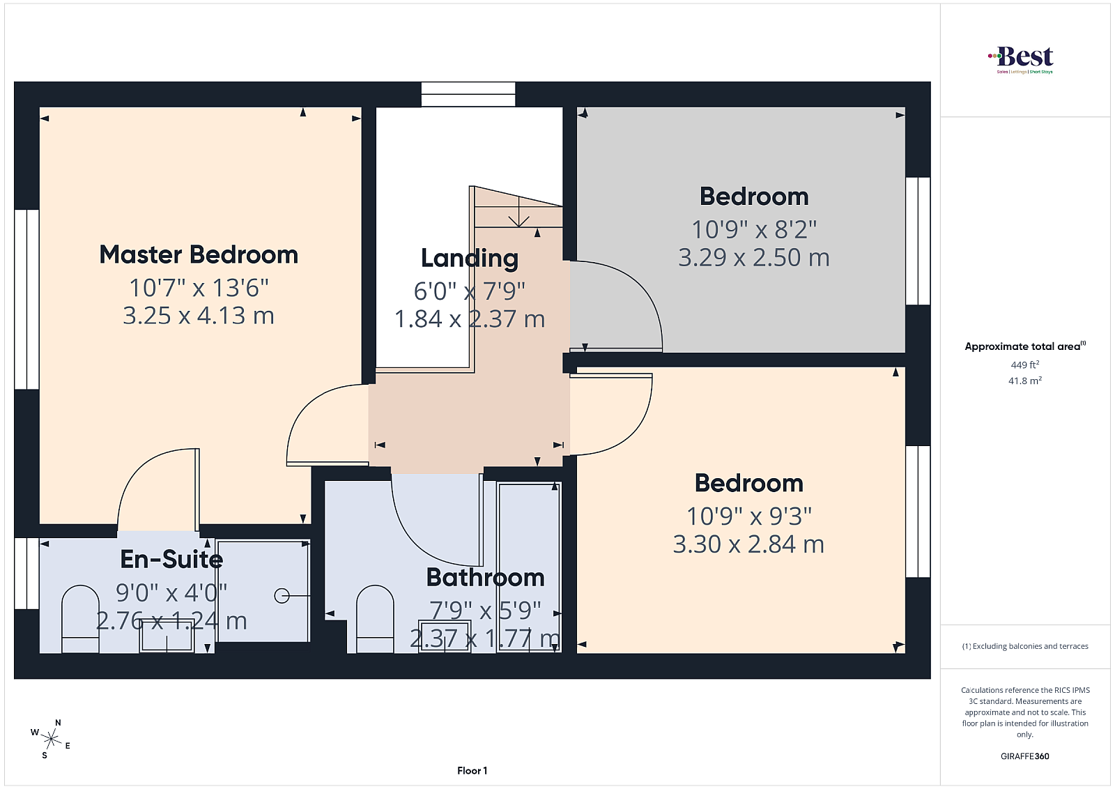 Master bedroom w: 4.16m x l: 3.26m (w: 13' 8" x l: 10' 8")
