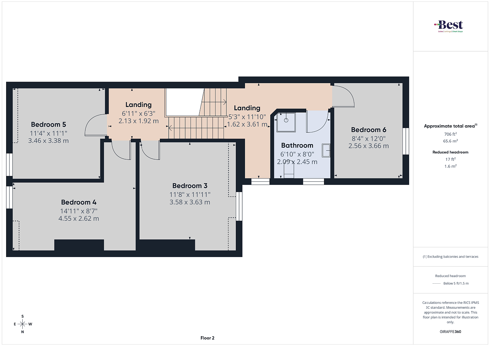 Six bedrooms over floors two and three