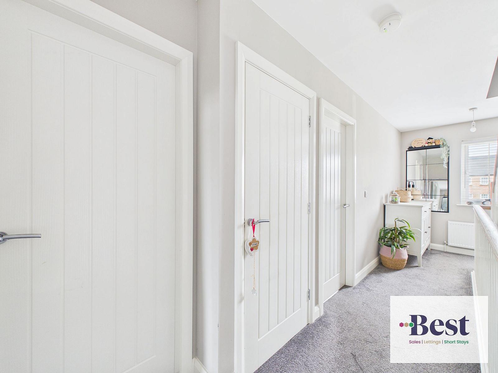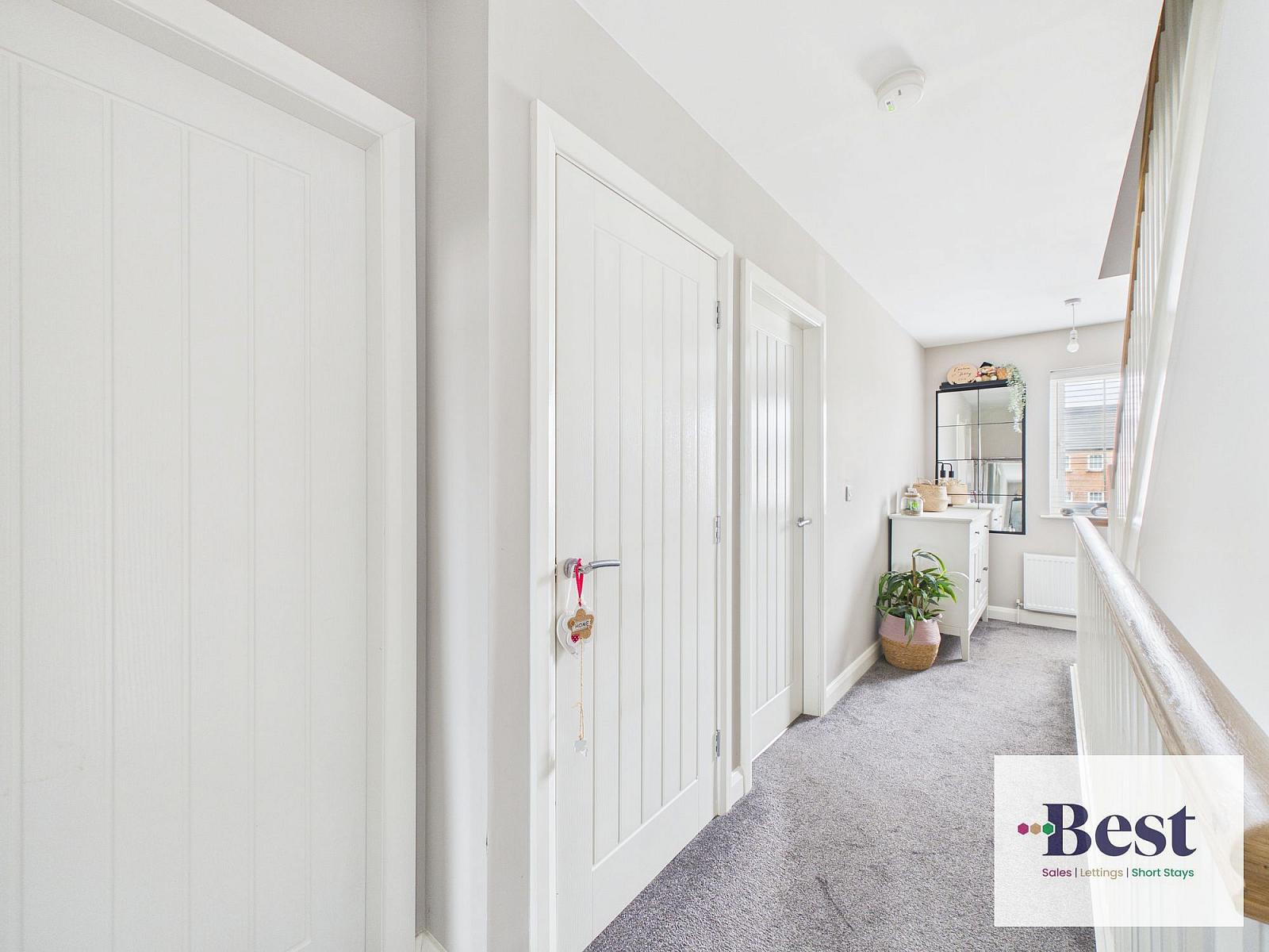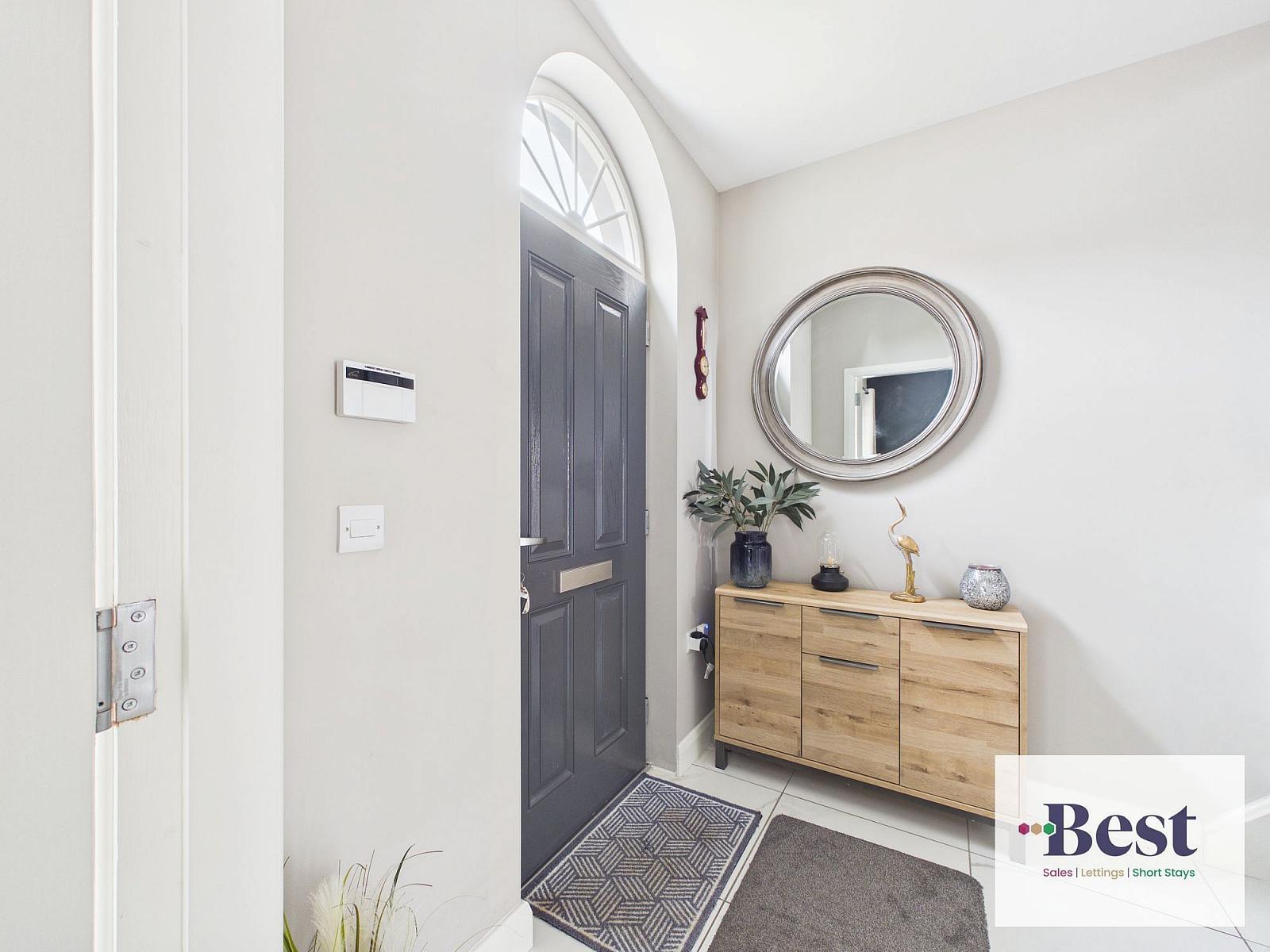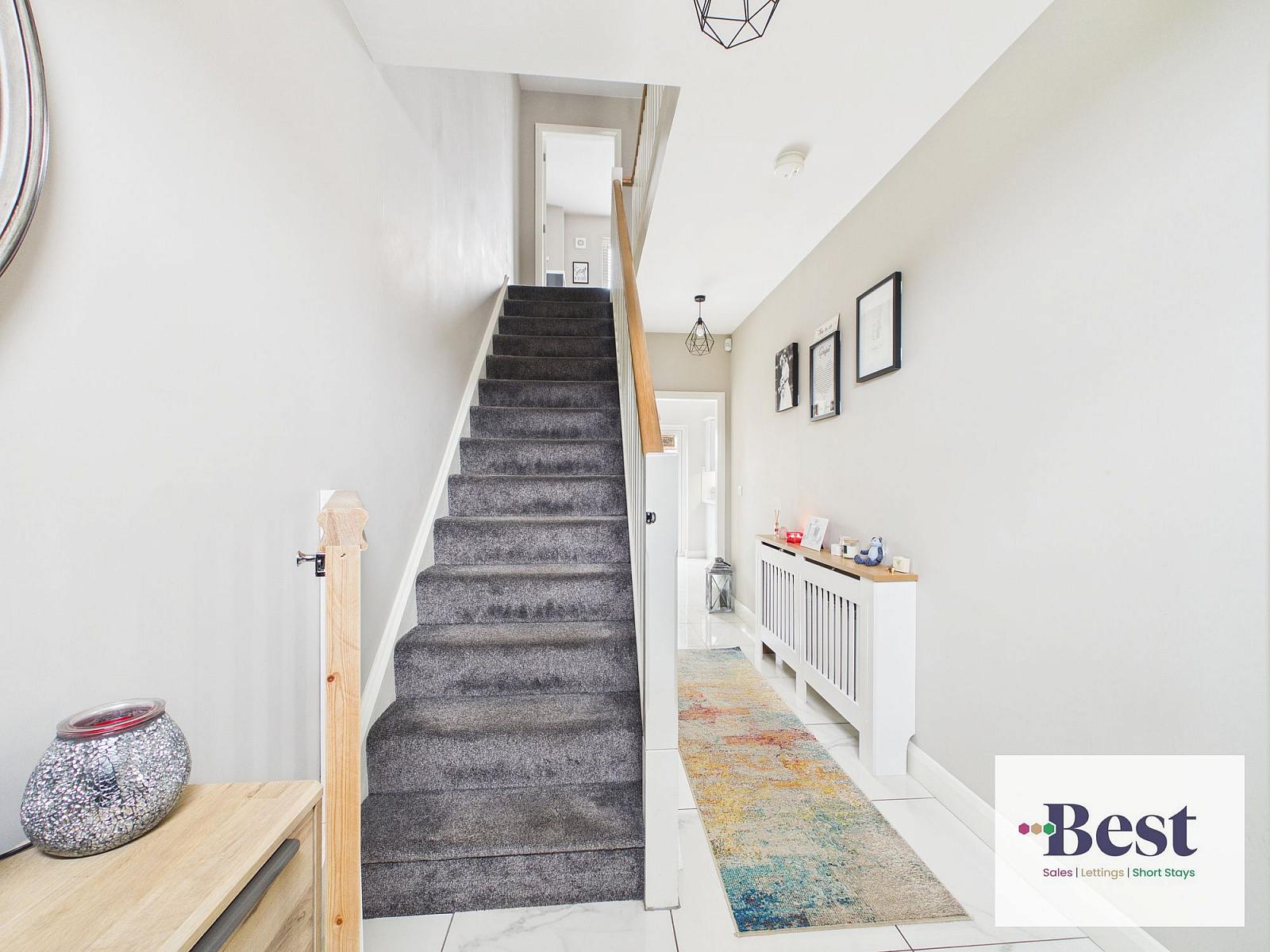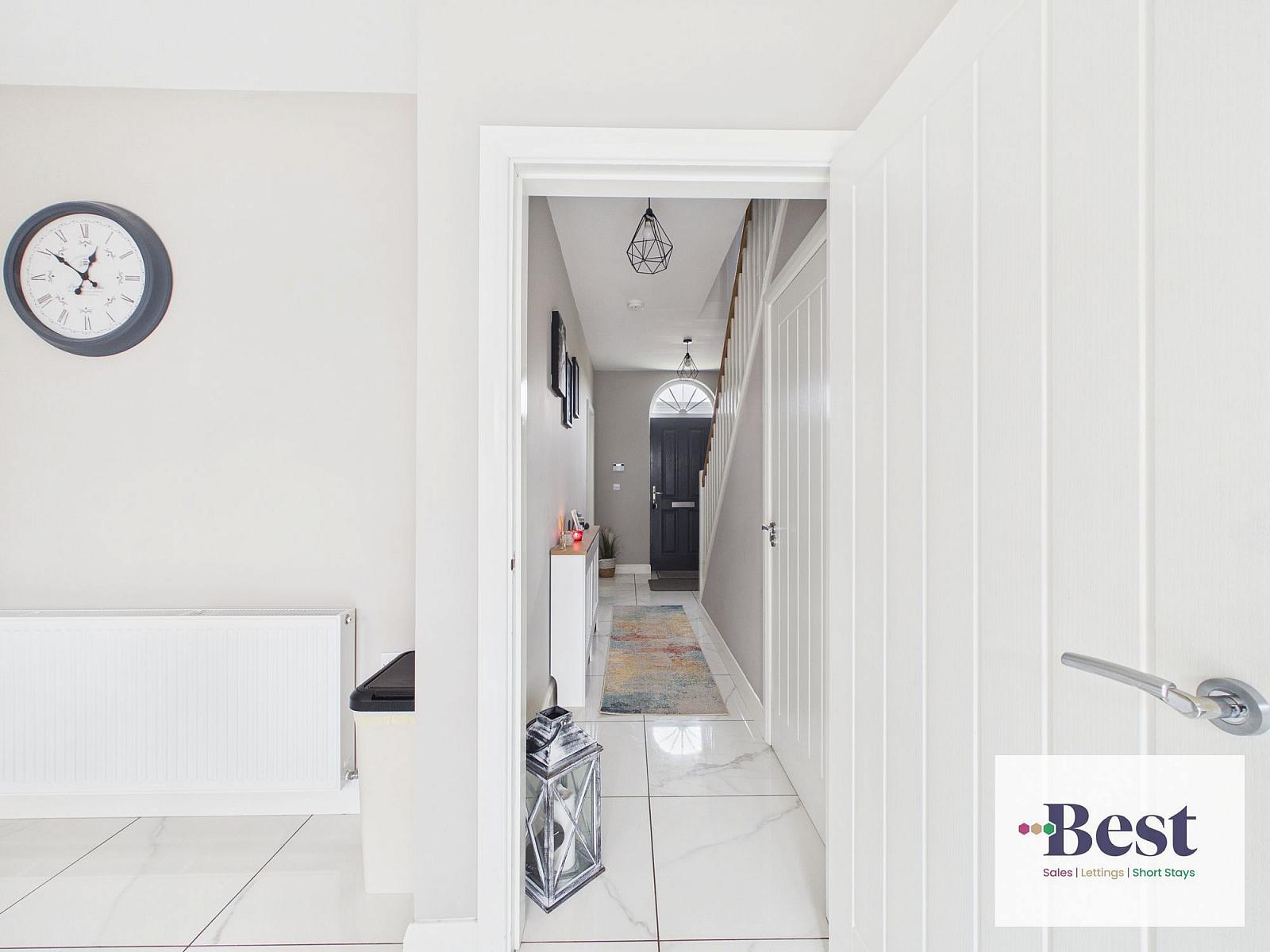 Composite door opening into an attractive and spacious hallway. Tiled flooring .
