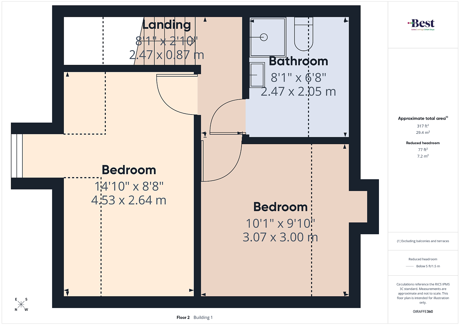 Bedroom 2 w: 3.58m x l: 3.14m (w: 11' 9" x l: 10' 4")