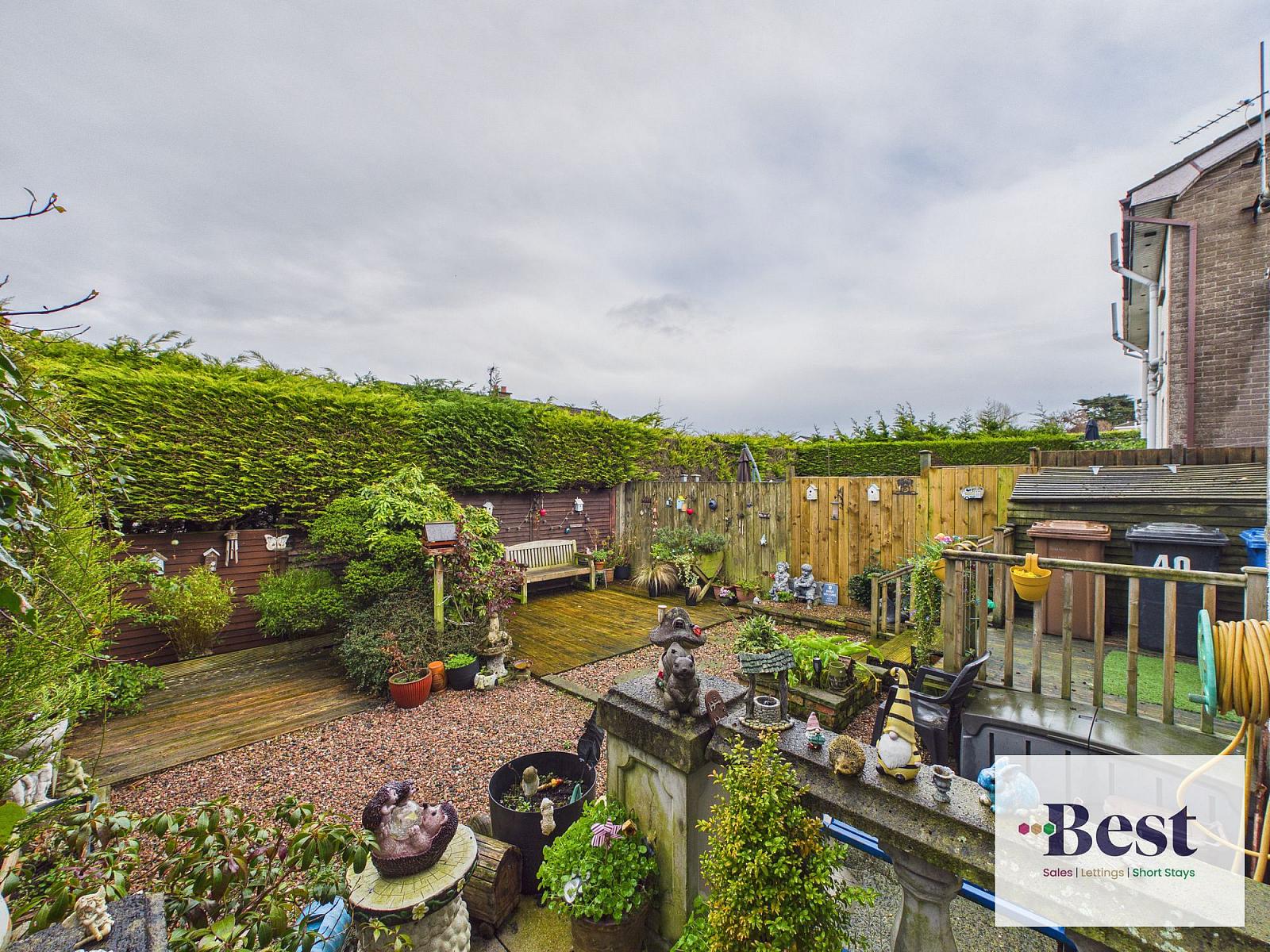 Established, well maintained and fully enclosed rear garden. Feature decorative stone areas, decking and a raised patio. Private garden with mature bushes.