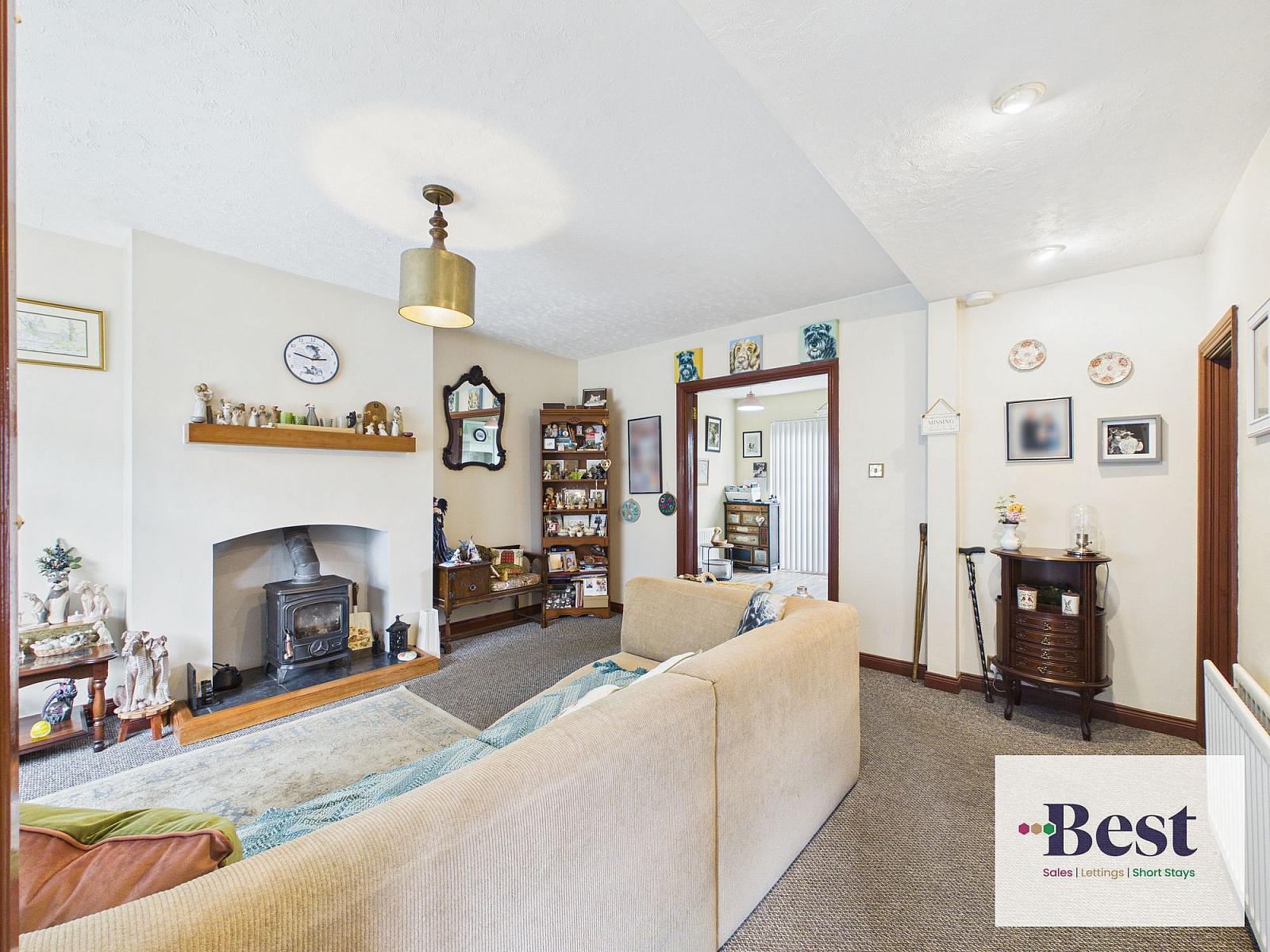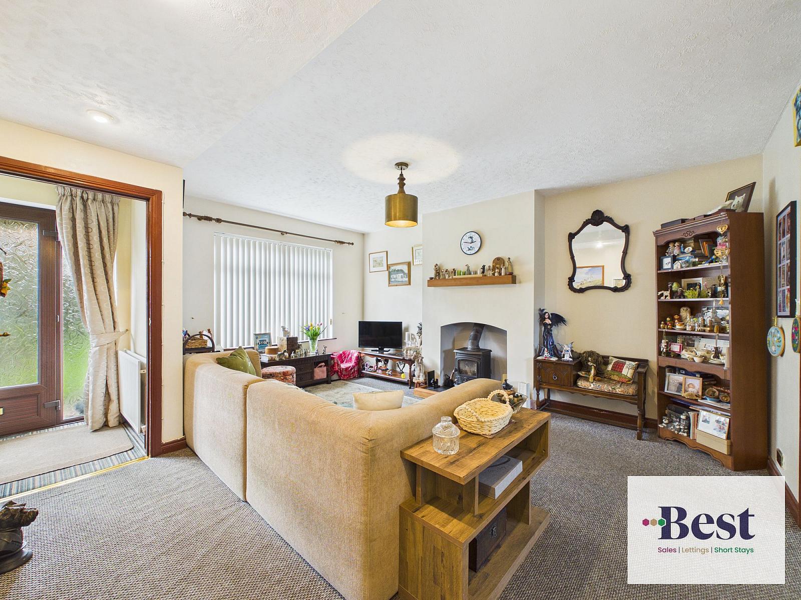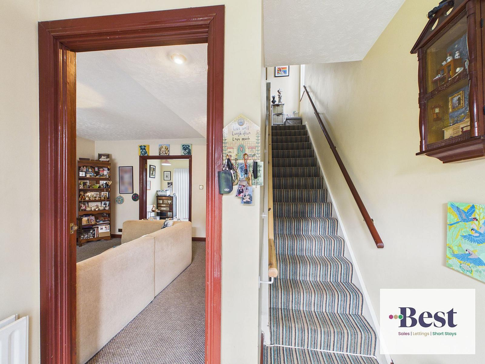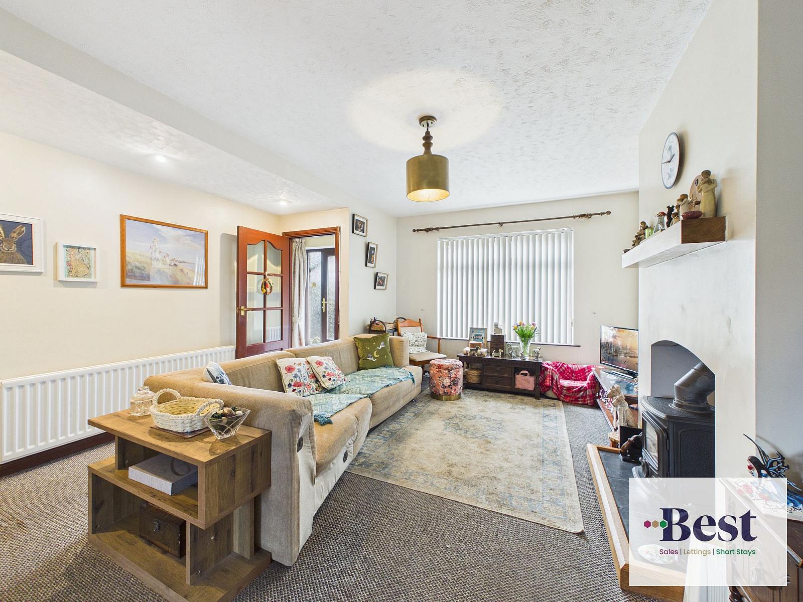 Good sized bright living room with feature fireplace. Access to under-stairs storage.