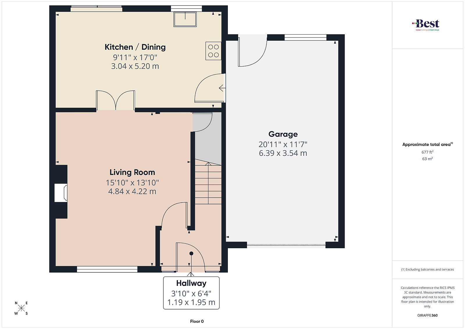 Garage w: 6.39m x l: 3.54m (w: 21' x l: 11' 7")