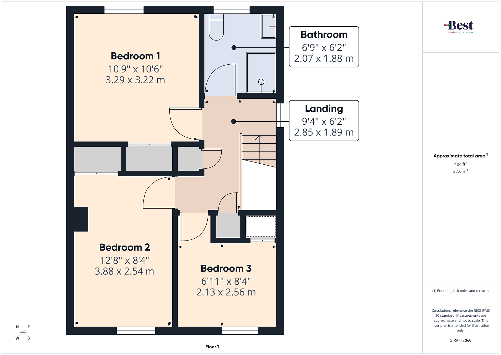 Bathroom w: 2.07m x l: 1.88m (w: 6' 9" x l: 6' 2")