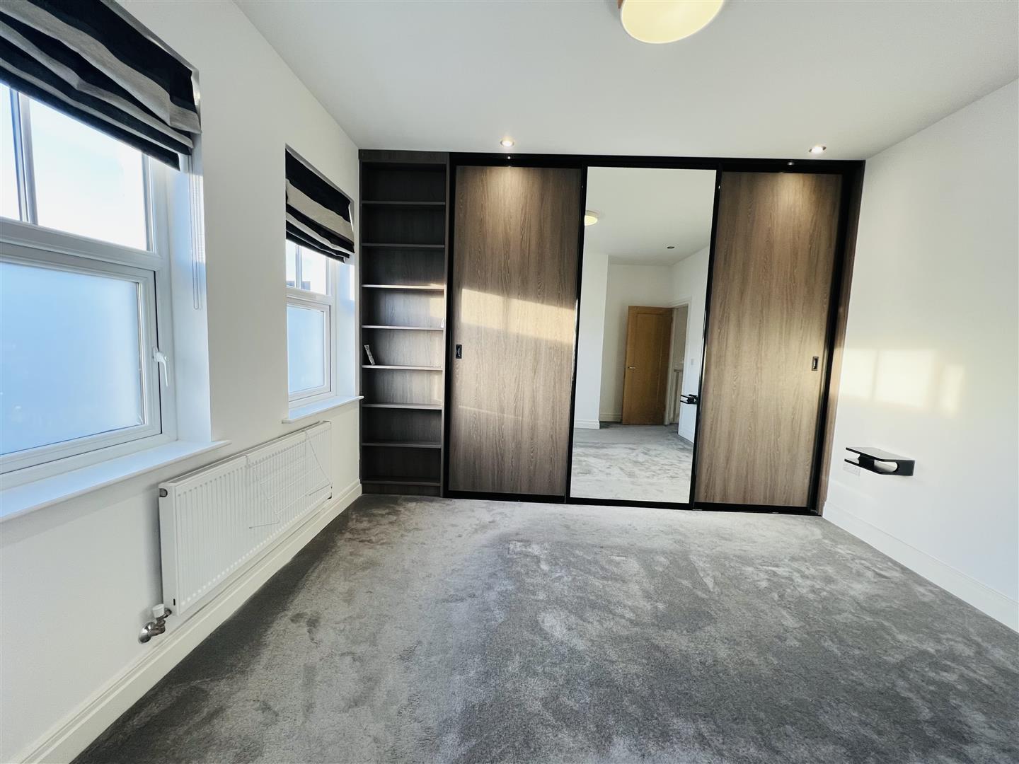 Having wall to wall built in wardrobes with sliding doors, recessed lighting.