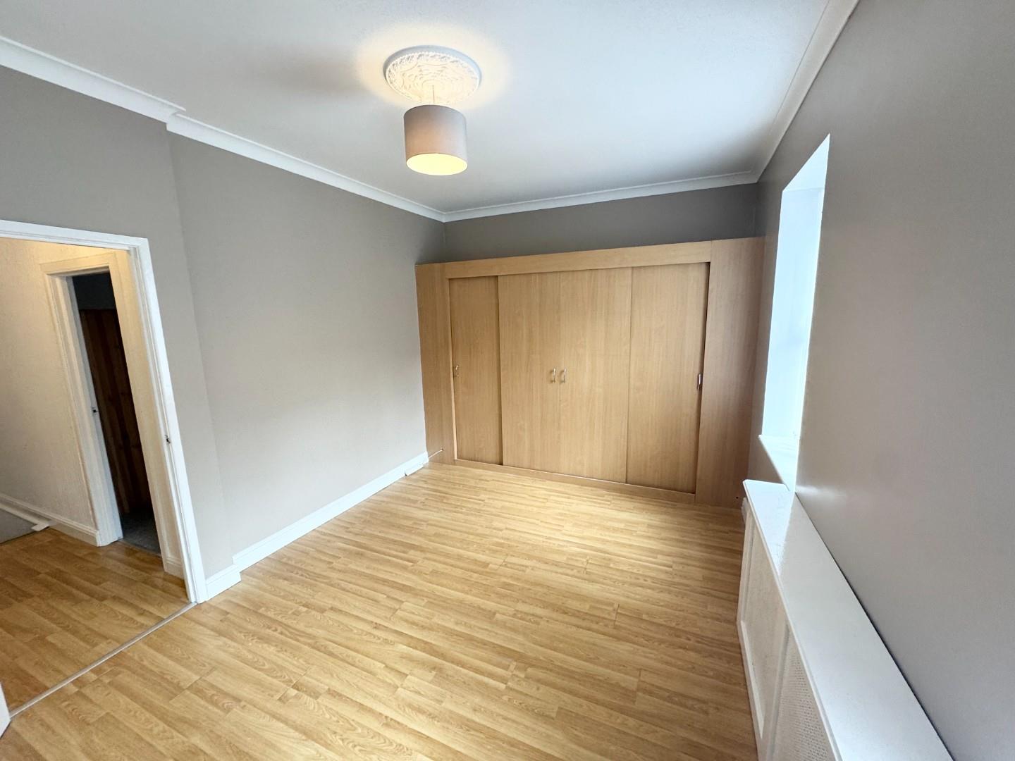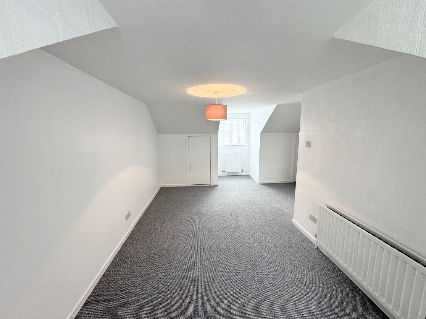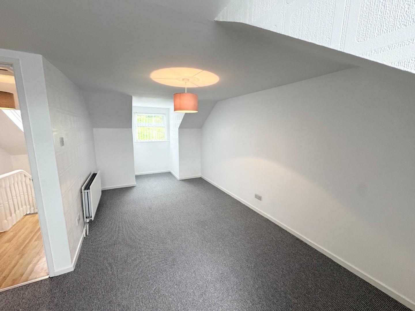 Bright spacious room with laminate floor, feature wood fireplace with socket for electric fire.
